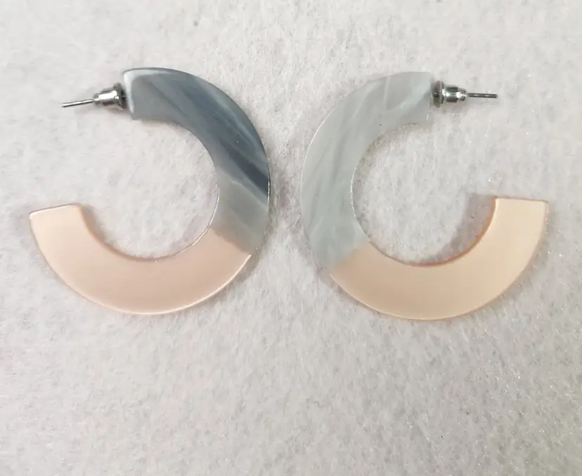 Acrylic Peach/Pink and Grey earrings. Pierced. Silver tone. Glows.