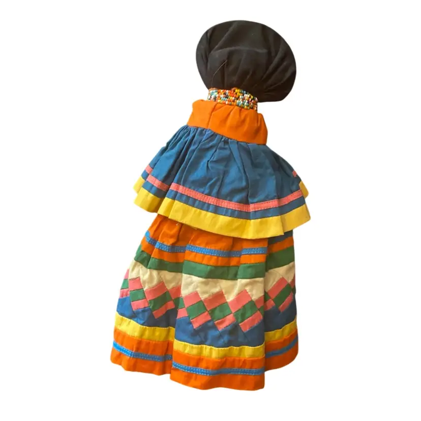 Doll w Quilted Dress Doll is in good condition.