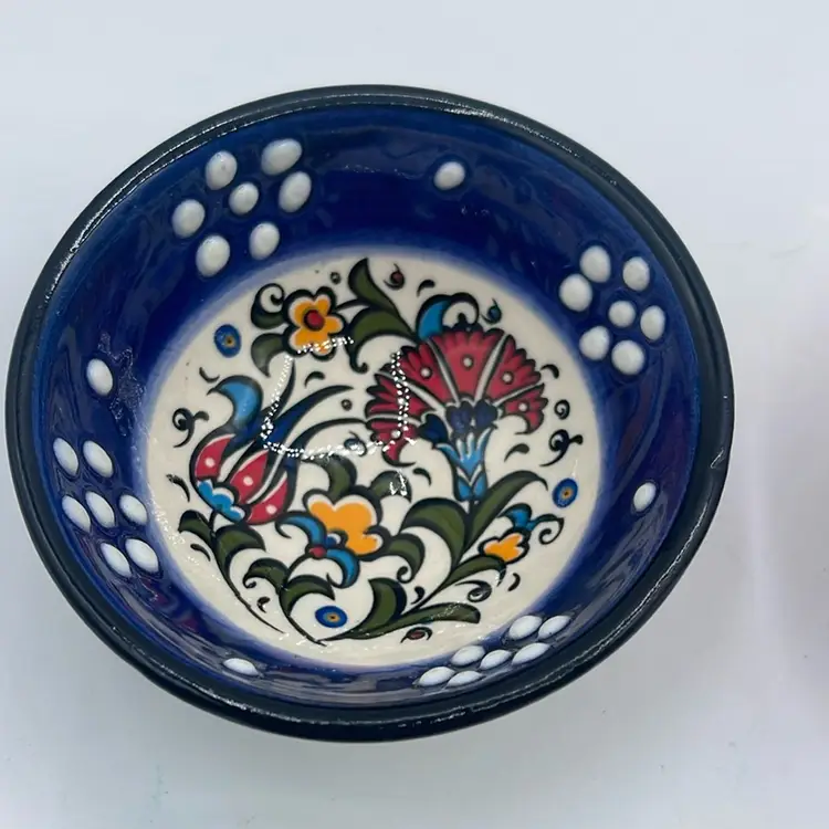 4-Hand Painted Ceramic Turkish Greek Arabic Ceramic Snack Dipping Bowls 3”