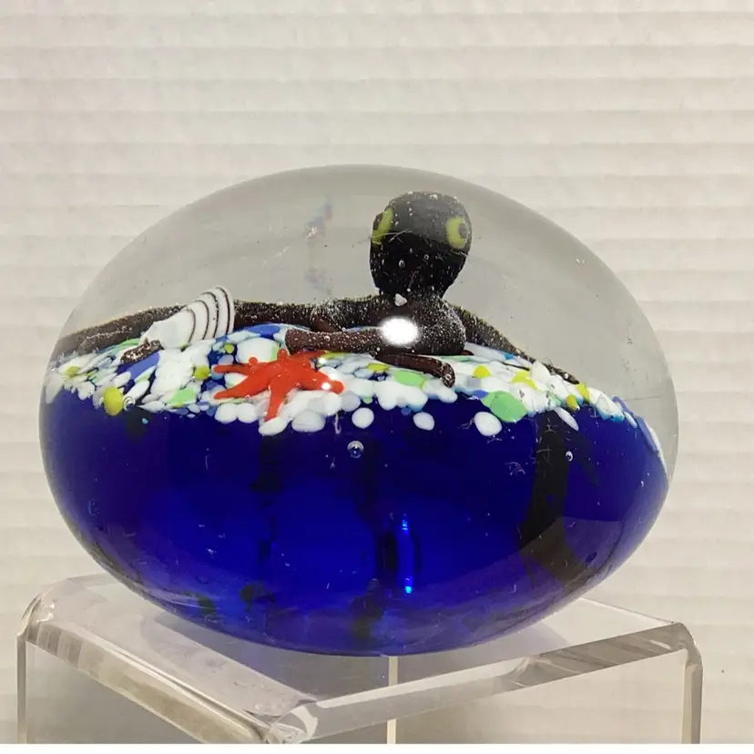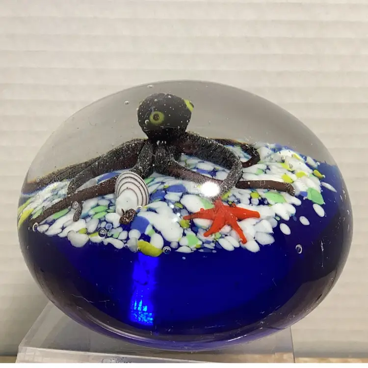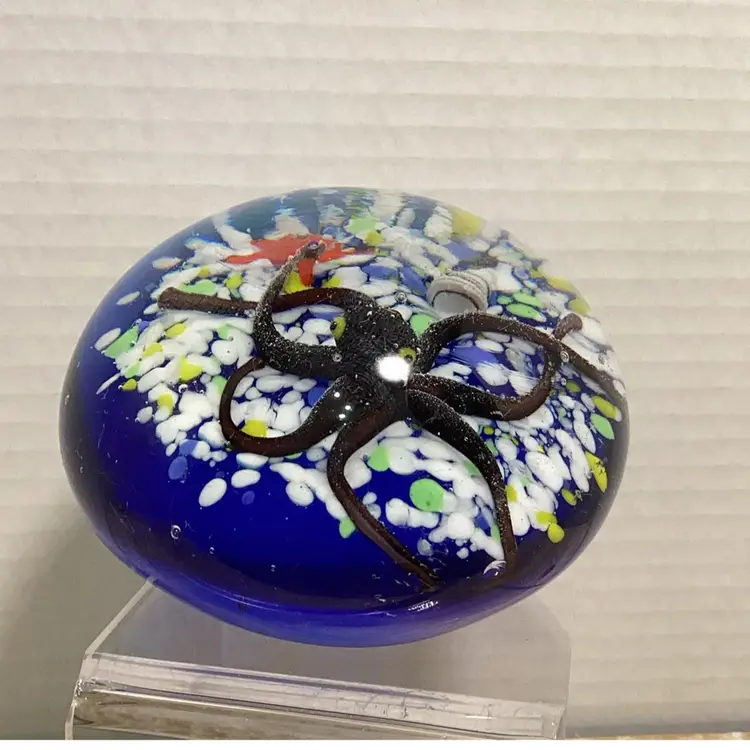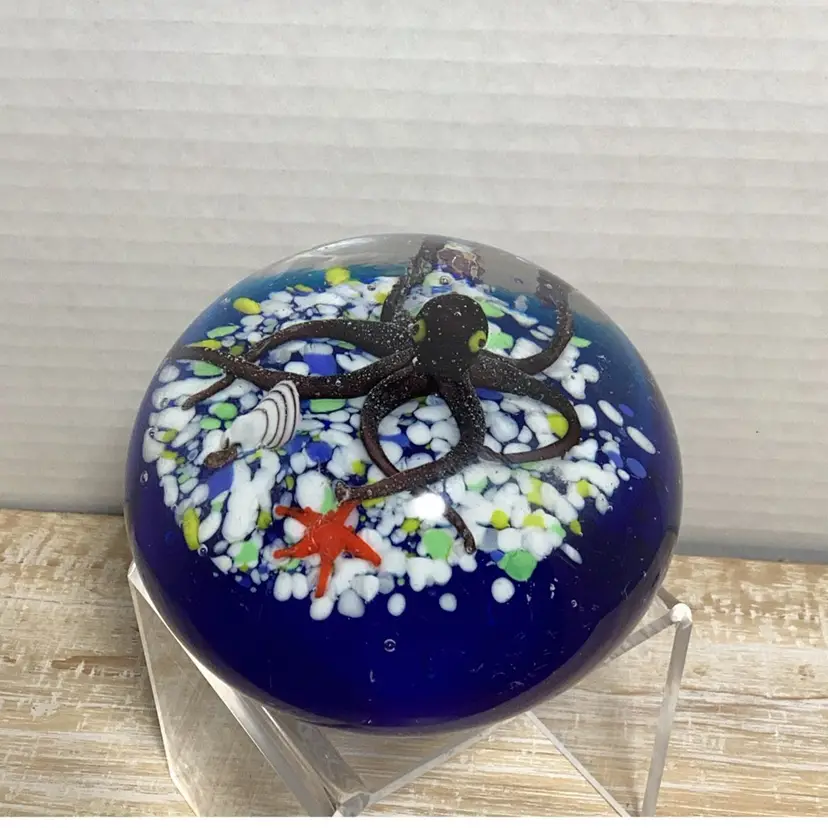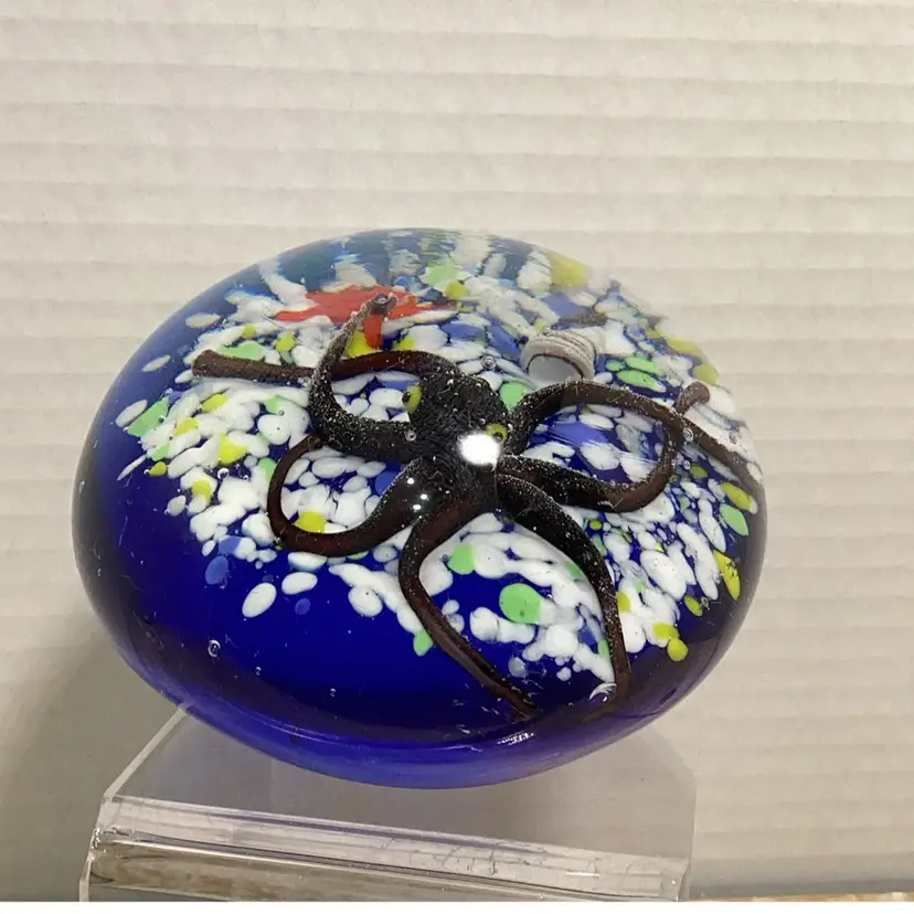4” wide. Not signed. Several small scratches on exterior from contact with surfaces. See photos for details, will also be shown live.