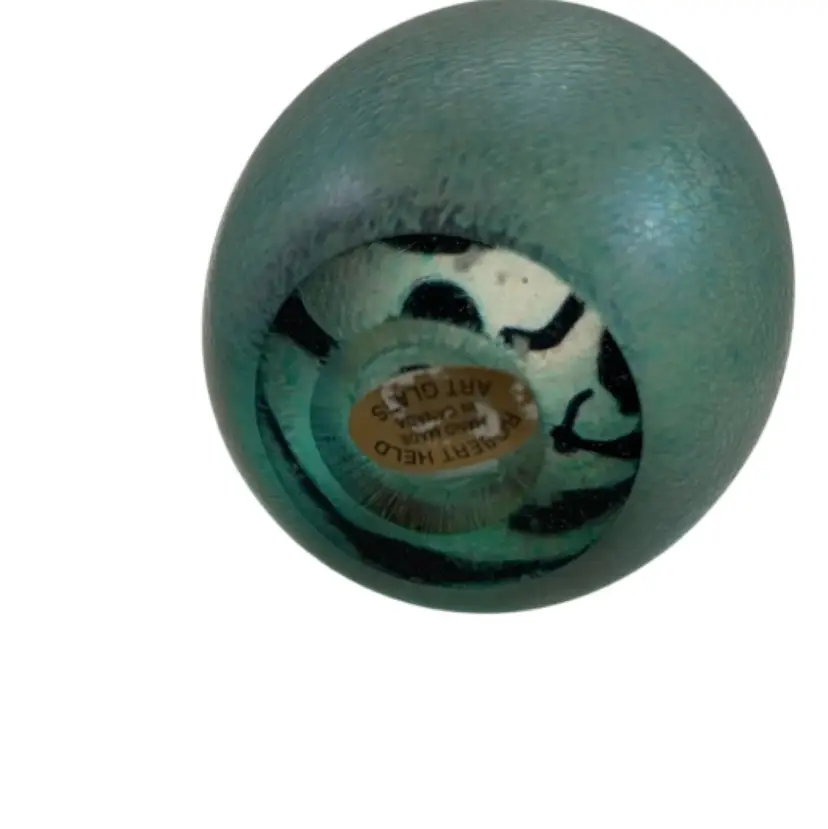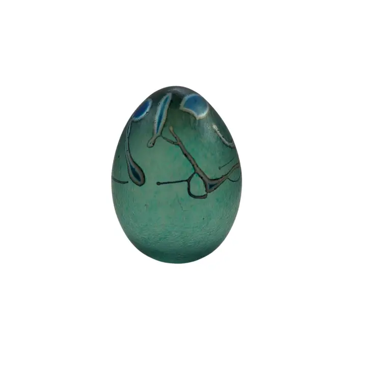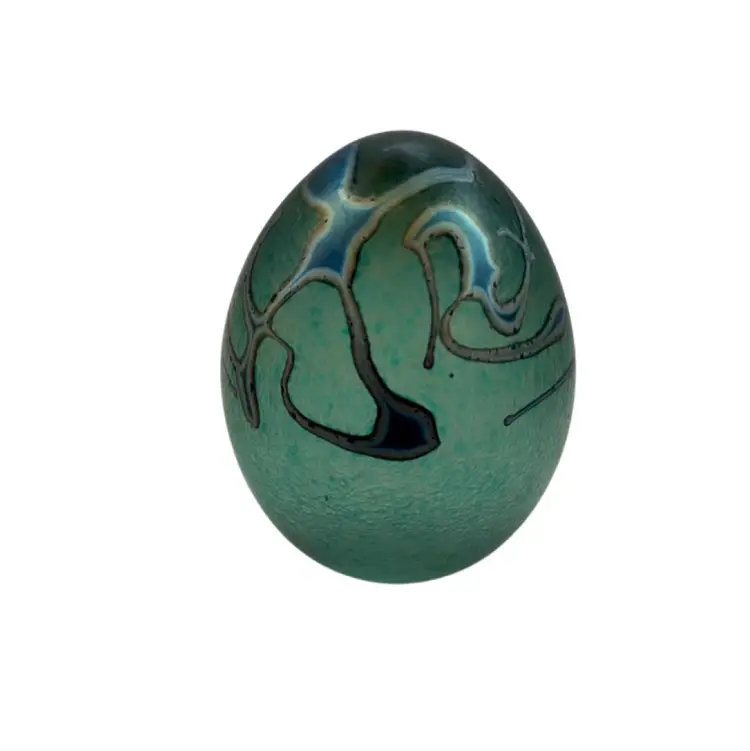 Robert Held Art Glass Egg Variegated Greens & Blues Textured Paperweight - Signed & Stickered - 4”