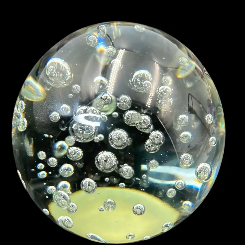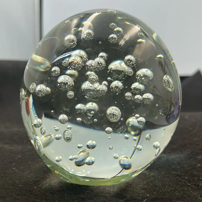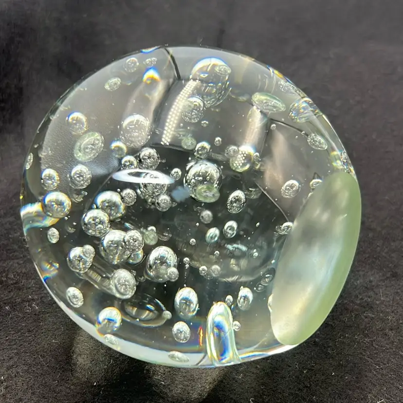 I love this clear smooth lady with floating bubbles. Yes, she is 3.1 pounds and she owns it! What I love is how it picks up colors and reflections of objects around it. See photos for a glimpse! No chops, cracks or bruises. She may need to travel on her own but I will combine shipping if I can!