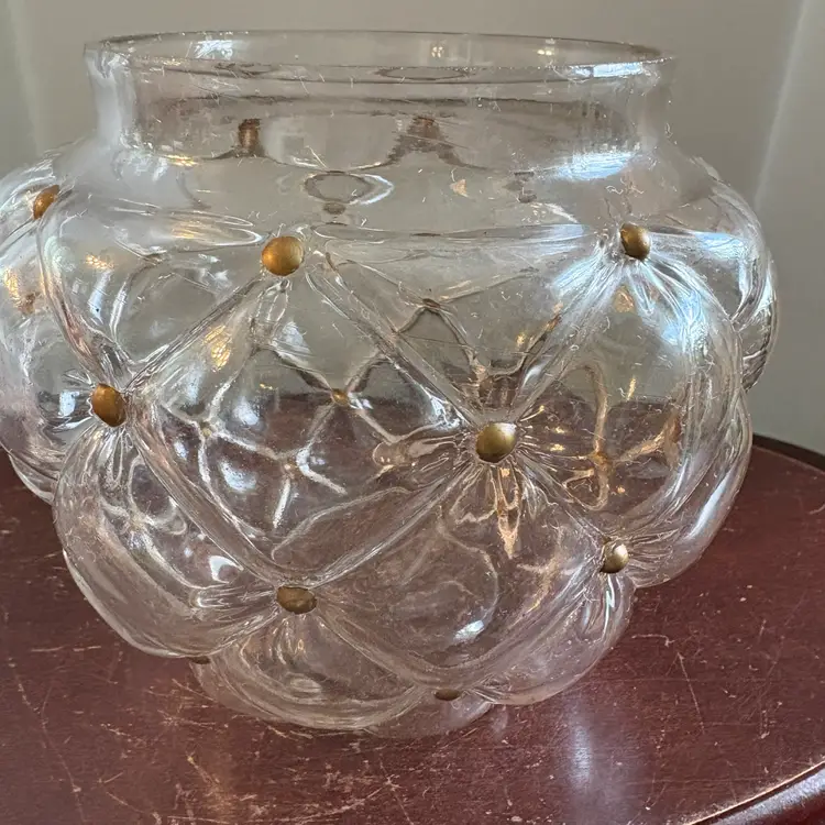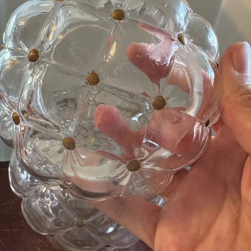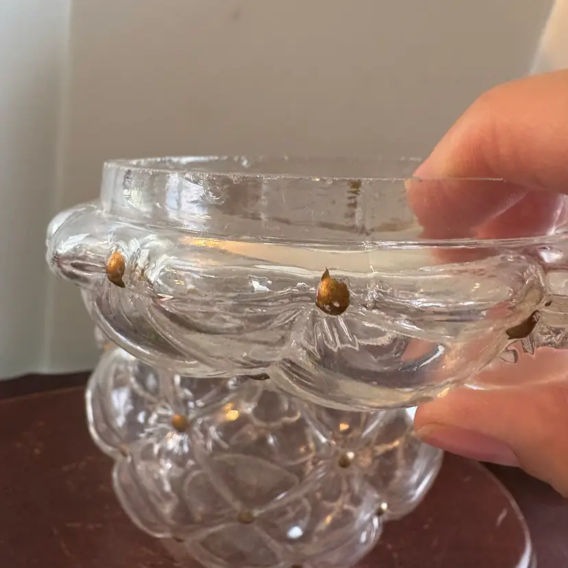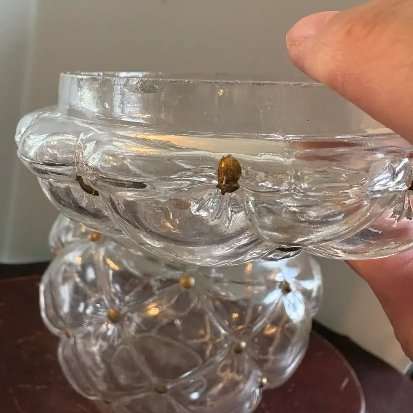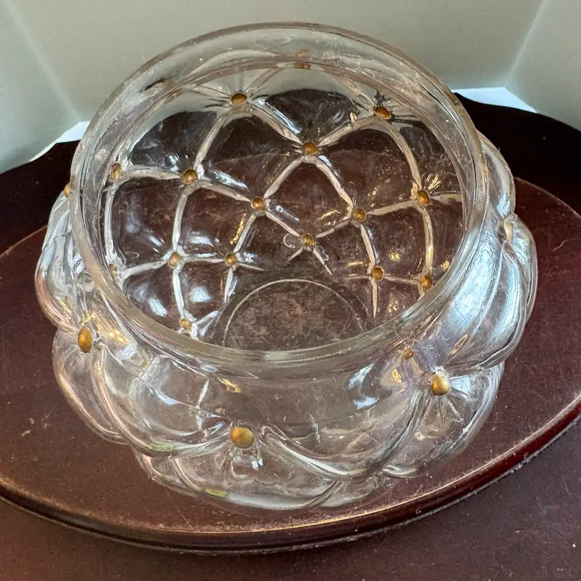Gold accents, some flea bites and chipping on edge of lid (see pics), 7” tall with lids and 5.5” wide