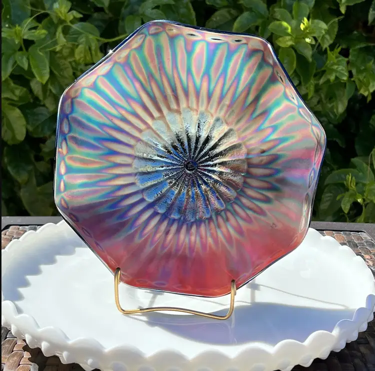 Unlike mass-produced carnival glass, this bowl is hand-finished, has undeniable heirloom quality, and combines Art Nouveau floral motifs with collectible rarity.