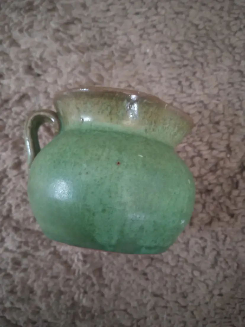 cuttle little pottery mug with brownish top aprox 3 inches decor only