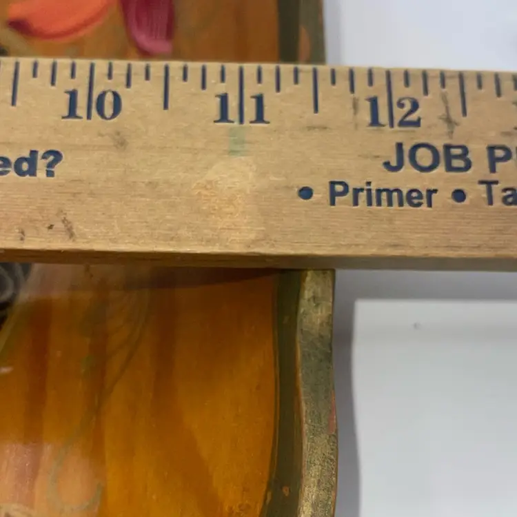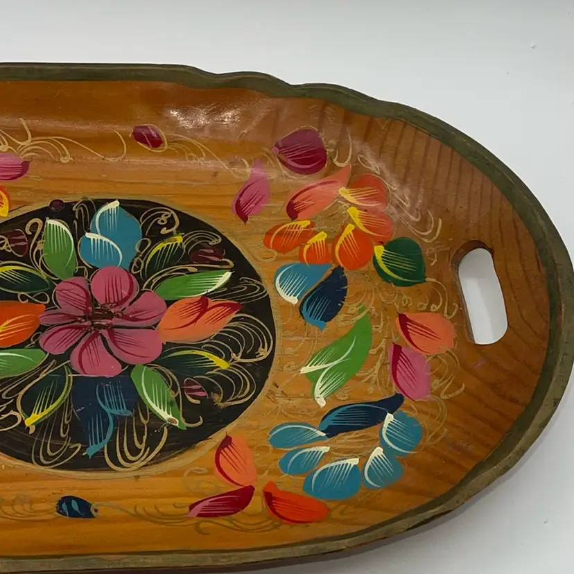 This is in good condition. It does look older. There is somewhere and tear from normal usage, but it is a beautiful handpainted tray.