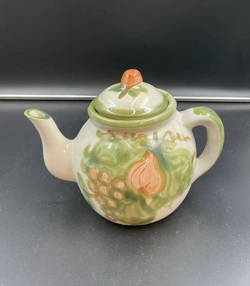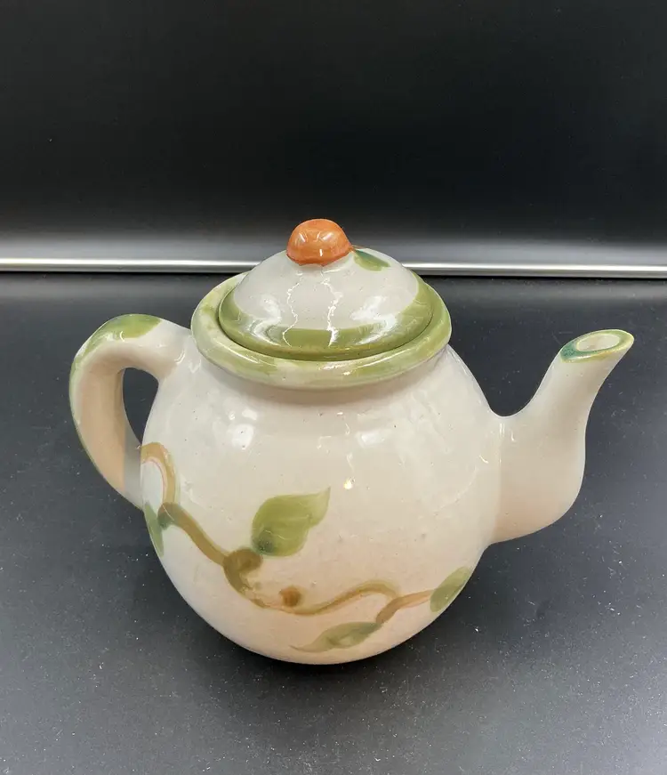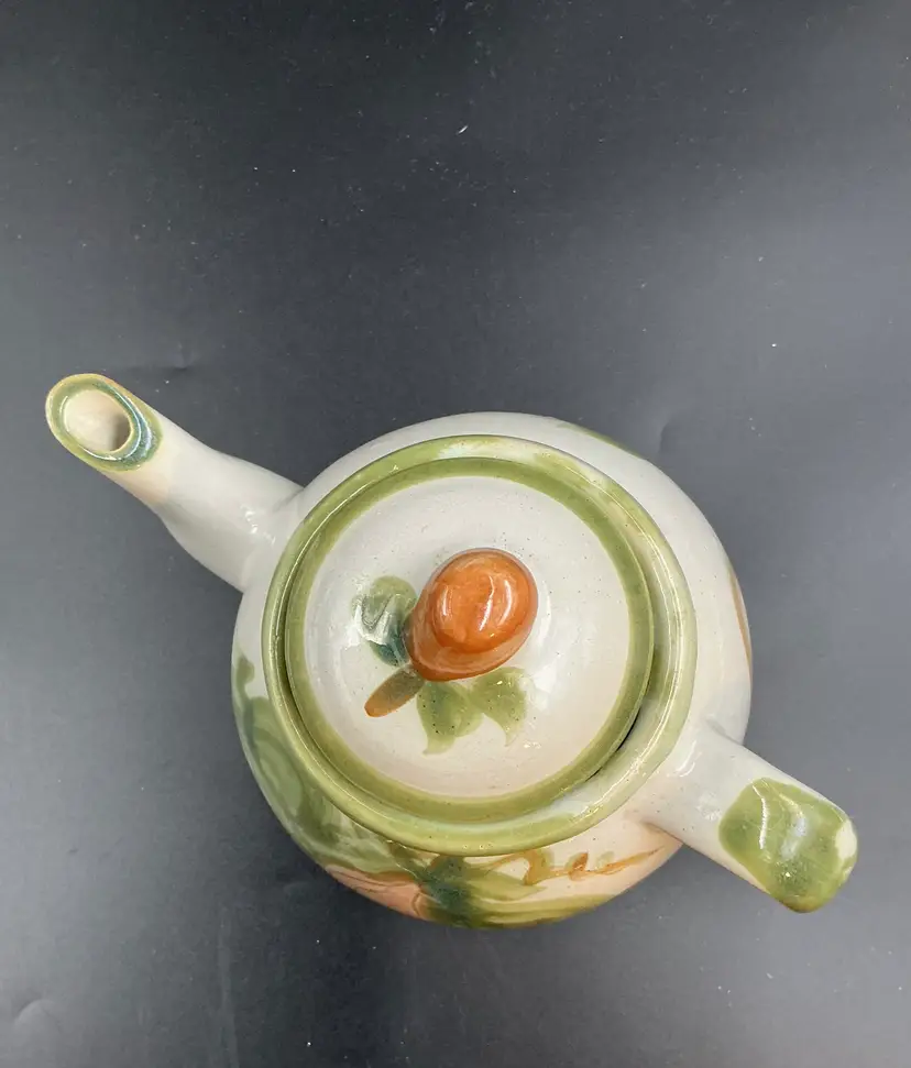 Louisville Stoneware “Harvest” tea pot, chip inside lid.