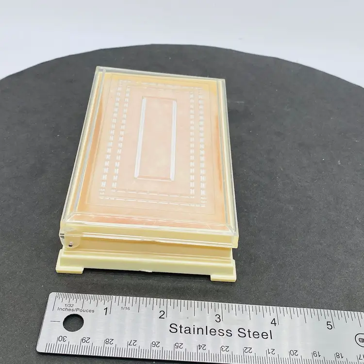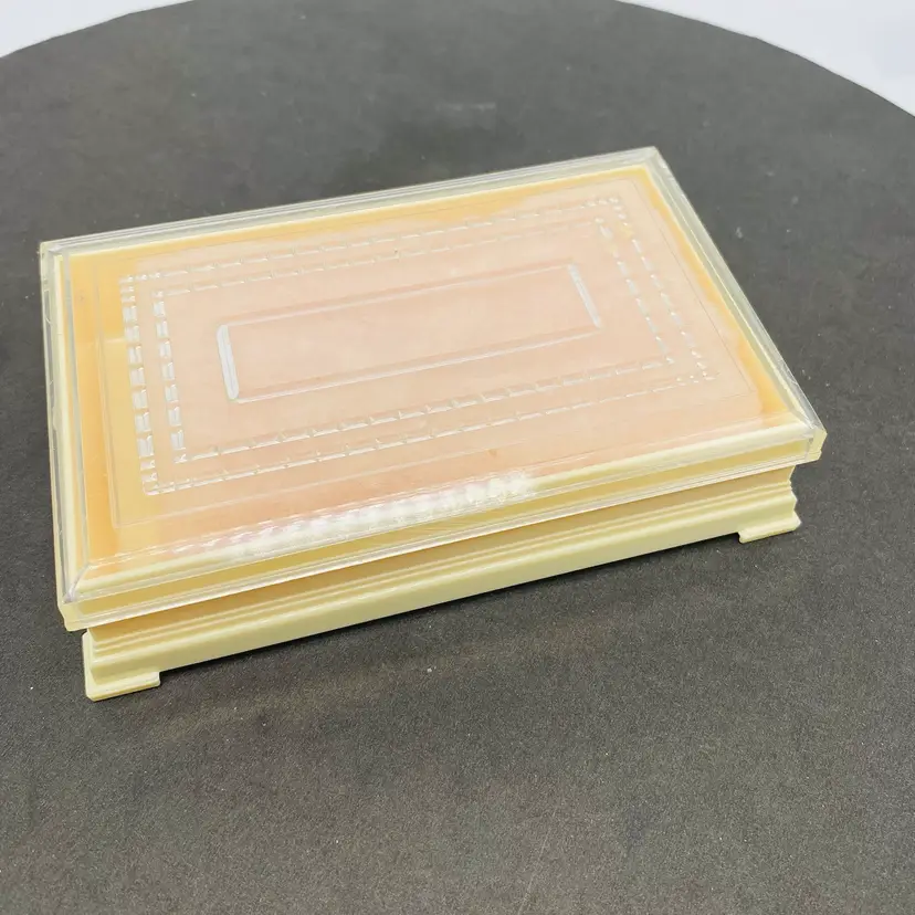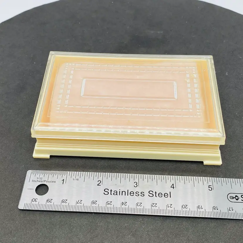 #2267 Antique Celluloid Plastic Jewely Trinket Box - Clear Lid and Pink Fluff for Jewellery Protection