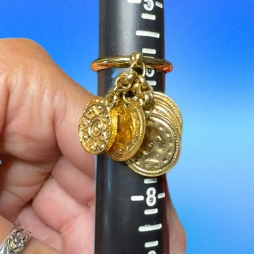 #08 - Buyers Choice Vintage Rings As Shown $3 Starts Goldtone Coin Dangle Ring Size 6