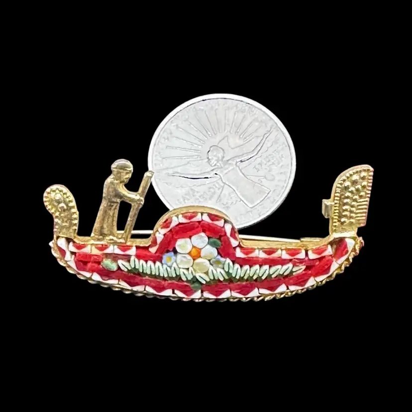 Crafted by Hand Made Artist with Tiny Glass Bead Tiles - by Italian designers Gold Tone Metal with Murano Glass Tesserae These were often purchased as souvenirs by tourist while in Italy "Grand Tour" Era 1960s to 1970s Condition - while it was reported as damaged- it is possible that a few tiles are missing due to age? 1 to 1 .5 inches length