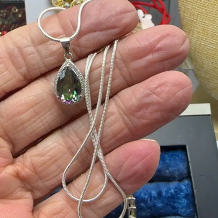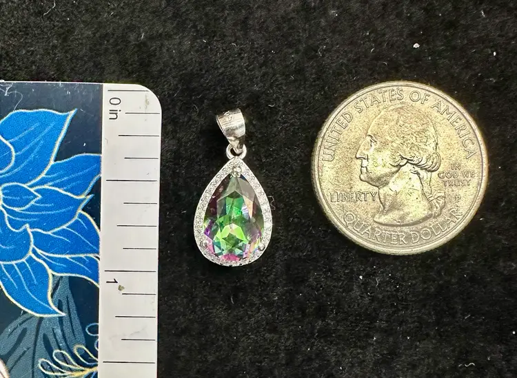 925 Sterling Silver Mystic Topaz and Crystal Pendant REDUCED PROGRESSIVE SHIPPING $2 & $1 each additional NEW BUYER COUPON 25% Off - NEW2WISHLIST25