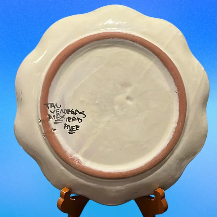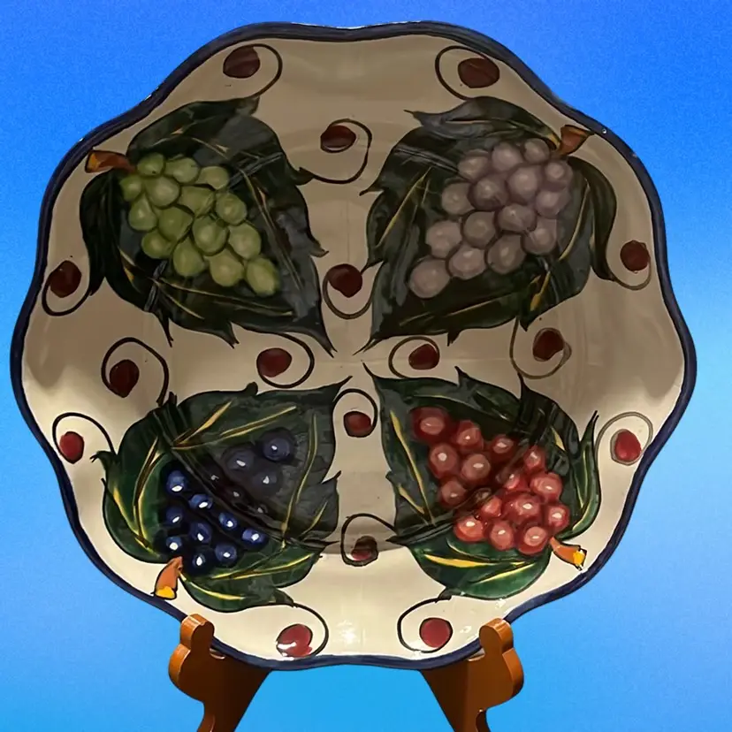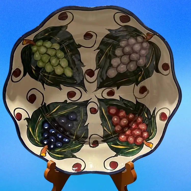 Talavera R. Venegas Pottery Mexico Grape Leaves Design Serving Bowl Hand Painted 12”