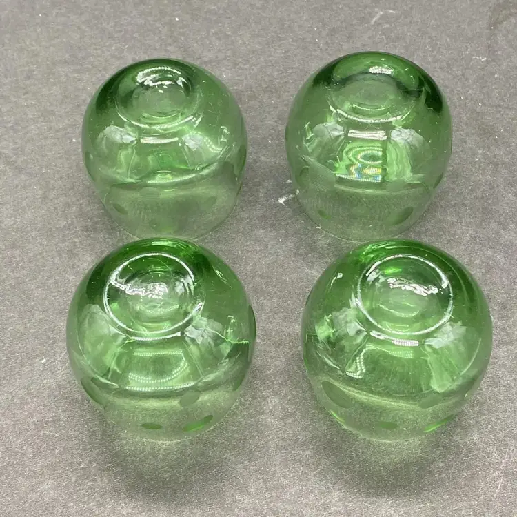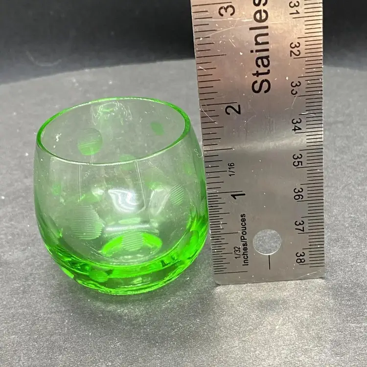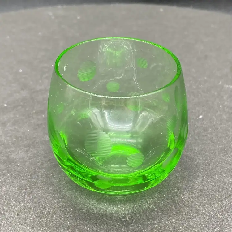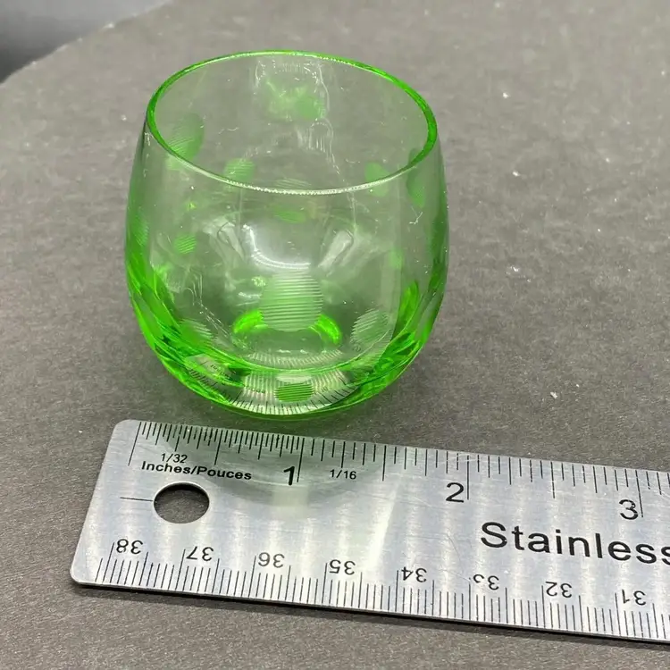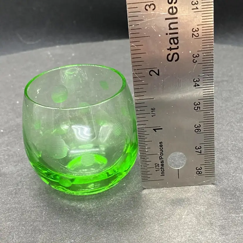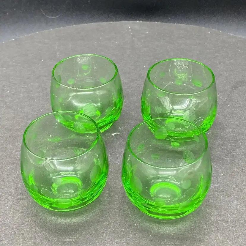 Add a pop of color to your barware collection with this Lime Green Vintage Polka Dot Roly Poly Cordial Shot Liqueur Glasses Set of 4. Made of high-quality glass material, these shot glasses feature a unique polka dot pattern that adds a touch of whimsy to your drinkware. These versatile glasses are perfect for serving up your favorite shots, liqueurs, or cordials. The set of 4 glasses is perfect for entertaining guests or enjoying a nightcap with friends. Their compact size makes them easy to store, and their vibrant lime green color adds a fun and playful touch to any bar setup. Don't miss out on the chance to add these charming glasses to your collection.