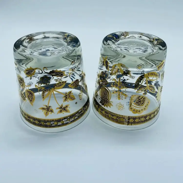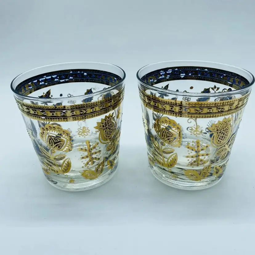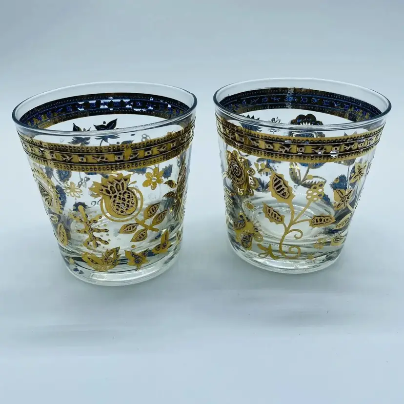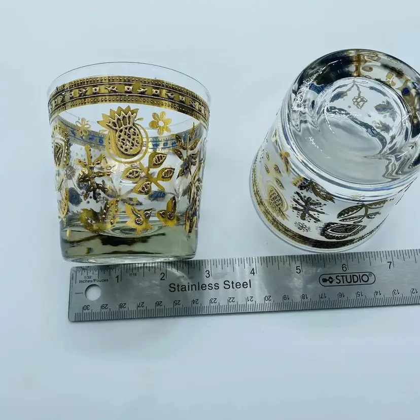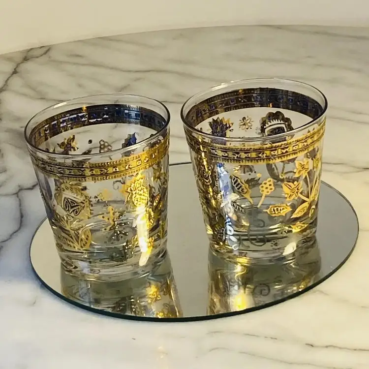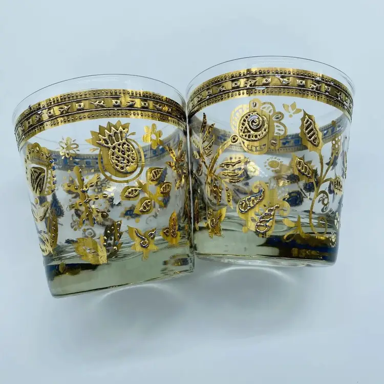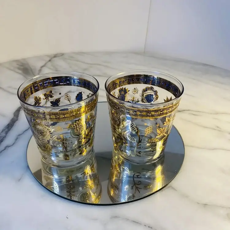 This set of two Culver lowball glasses is the perfect addition to any modern home bar. The glasses feature a sleek gold embellishment on a clear glass base, offering an elegant take on classic drinking ware. Crafted from high-quality glass, these glasses are sturdy and durable, making them perfect for everyday use or special occasions. With a capacity of 6 oz, they are ideal for serving whiskey or other spirits. This set includes two glasses, making it perfect for sharing a drink with a friend. Add a touch of sophistication to your barware collection with these stylish glasses.
