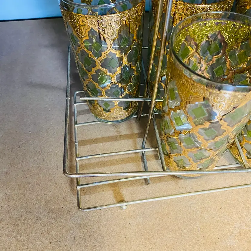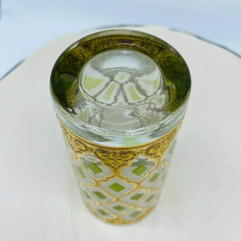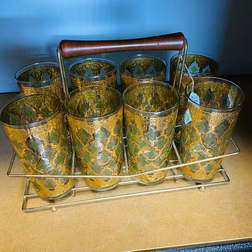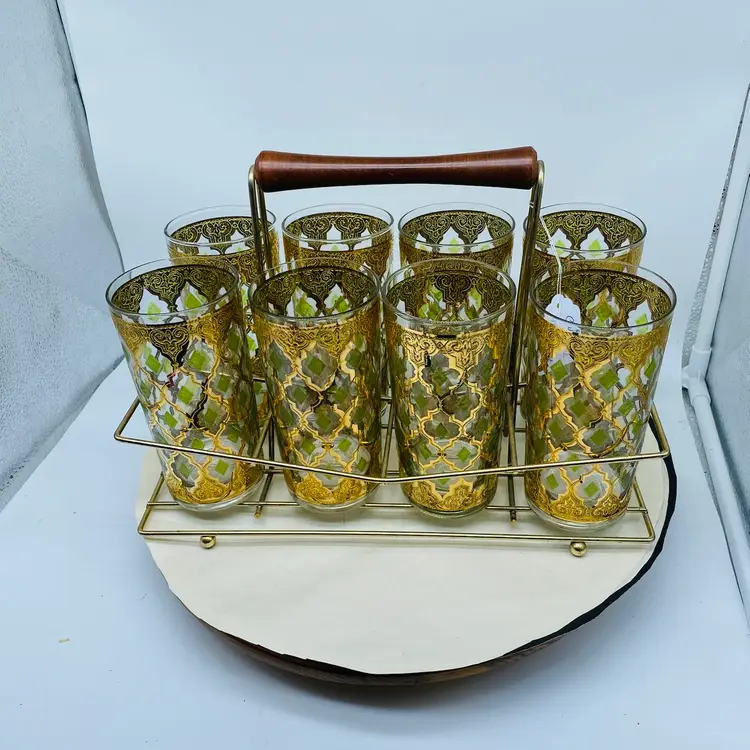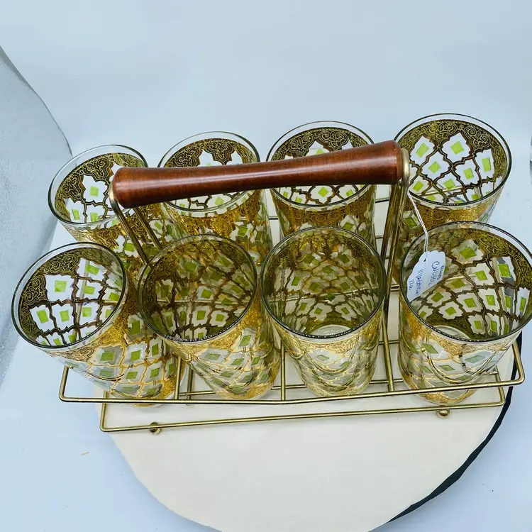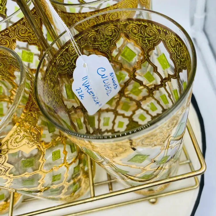 The use of real gold and meticulous craftsmanship made Culver glassware a symbol of luxury and sophistication. The Valencia pattern, with its Moorish influence, perfectly captured the glamorous aesthetic of the Hollywood Regency style. Culver sets like this one are highly sought after by collectors today for their timeless appeal and historical significance.