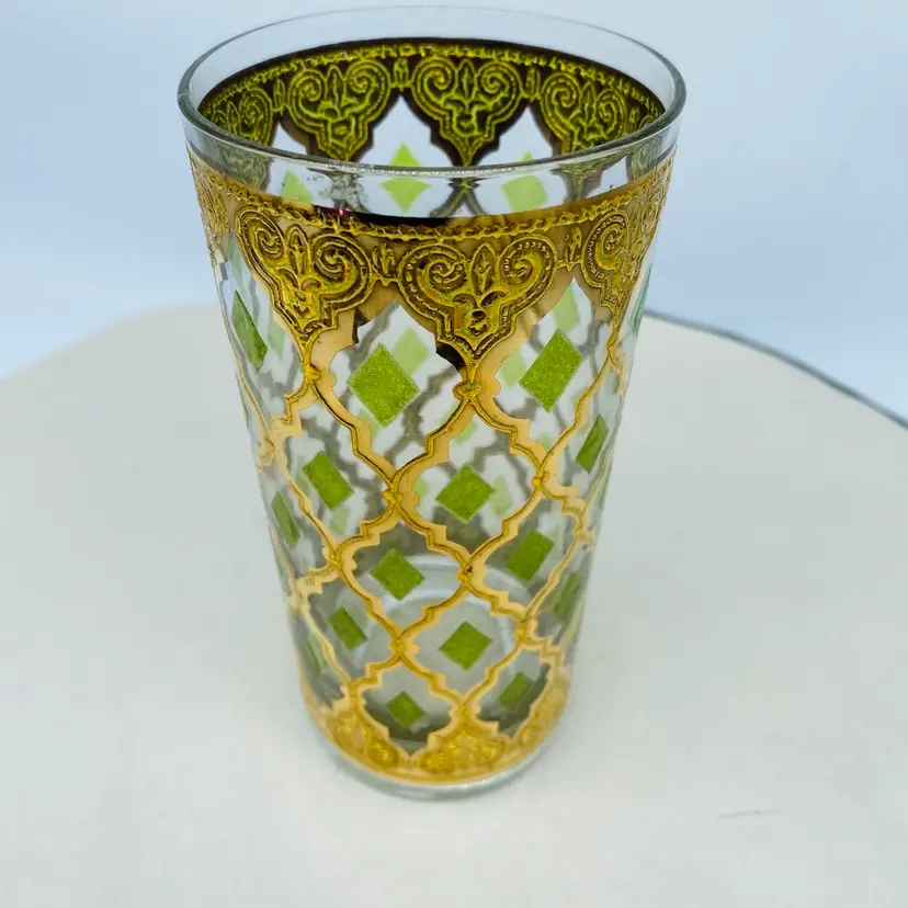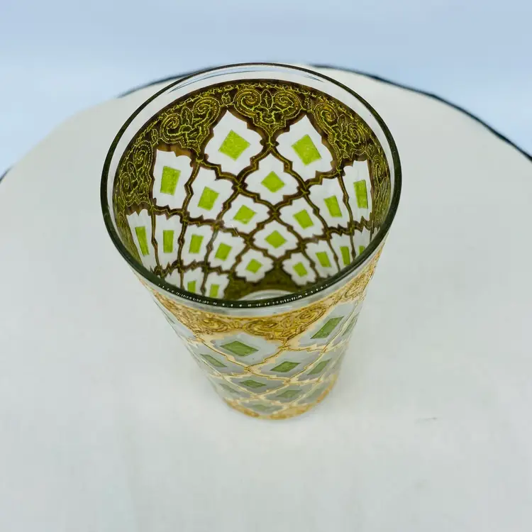 Culver Glass Company, established in 1939, is renowned for its stunning glassware adorned with 22-karat gold decorations. The Valencia pattern, introduced in the 1950s, is one of their most iconic designs, characterized by its intricate geometric patterns and vibrant colors.