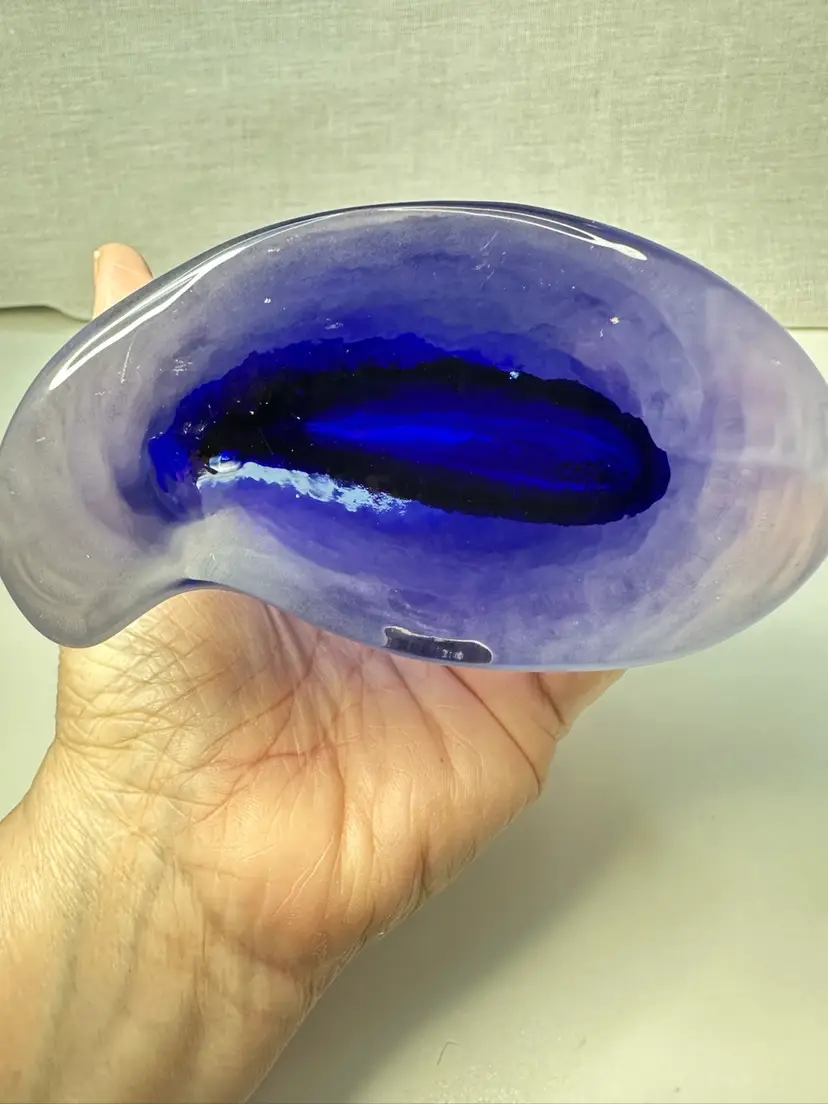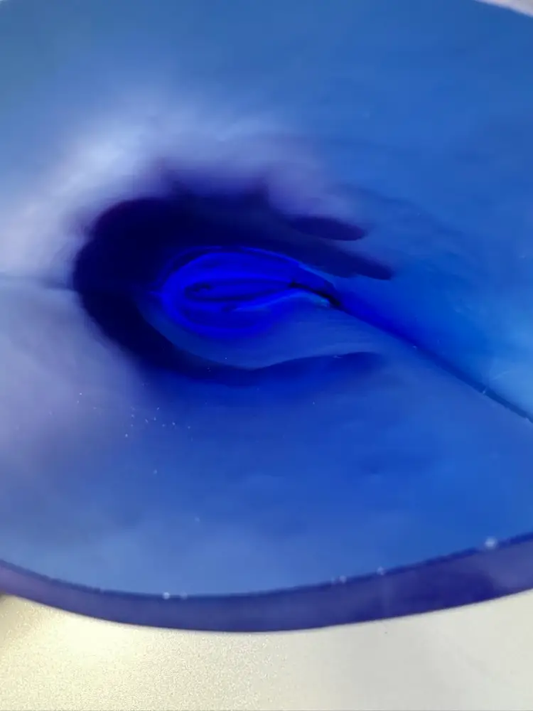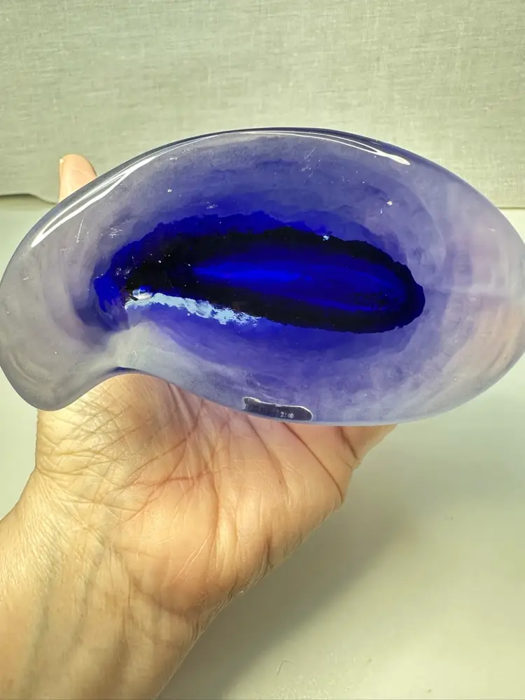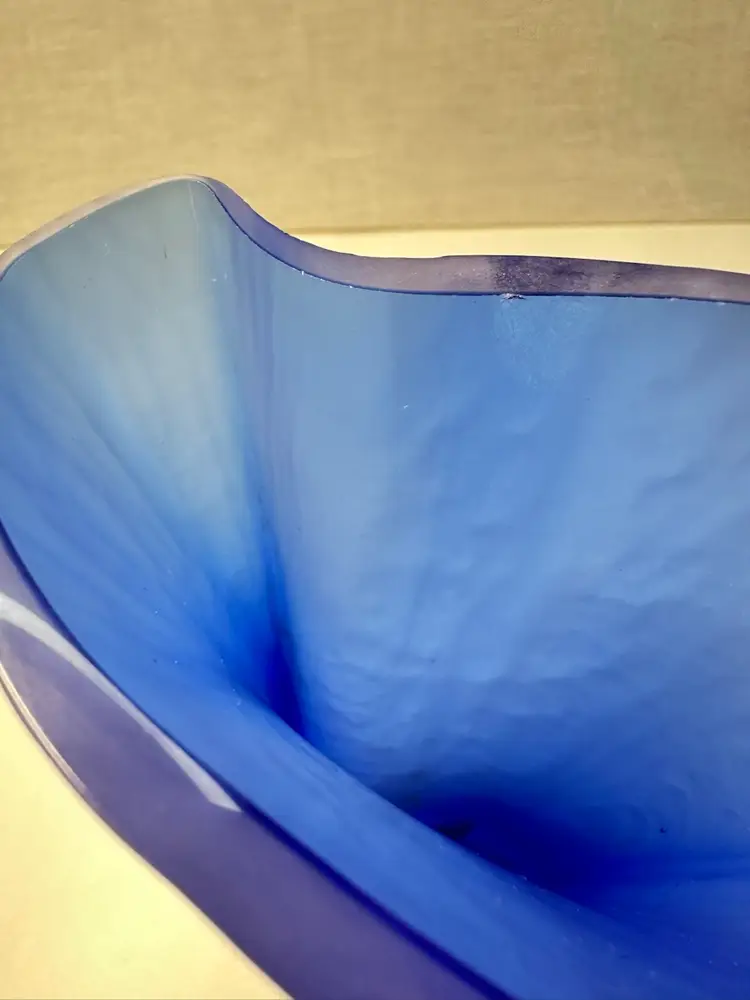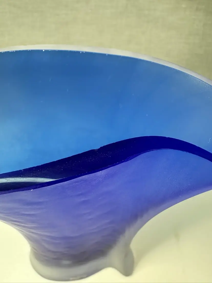 This vase was designed by Björn Ramél at SEA Glas Bruk between 1970 and 1979 in Sweden. Measuring 8 inches high and 4.25 at the widest point. The vase has a slight texture to it almost like bark on a tree. The top edge has been polished. There are two places that are flea bites or where the glass flaked during buffing. The largest on is about 1mm x 1mm or 3/64th of an inch. Has several air bubbles in the glass.