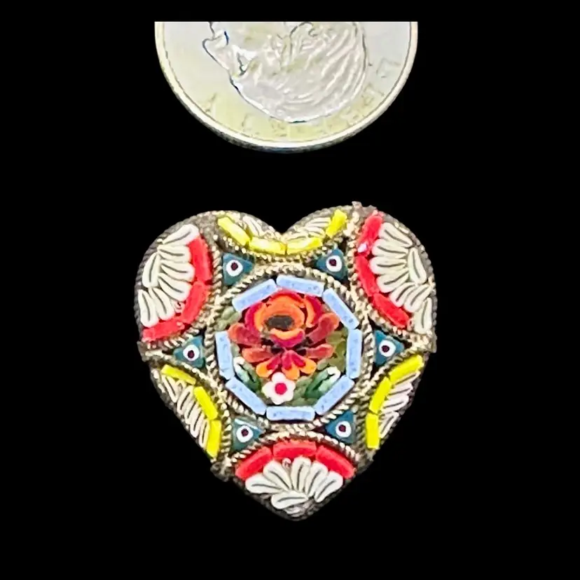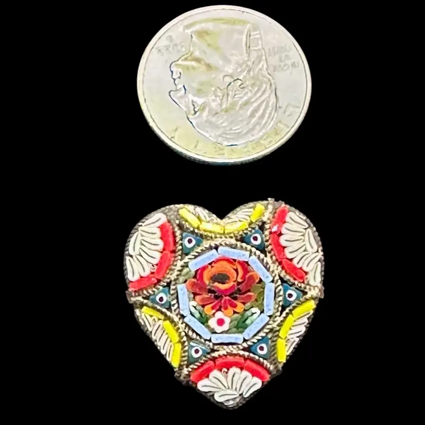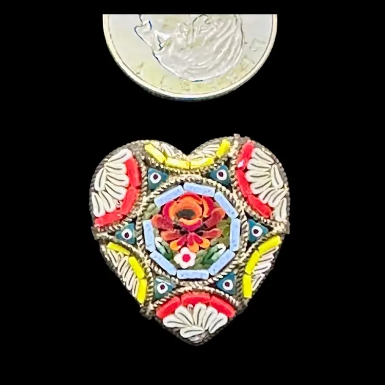 Crafted by Hand Made Artist with Tiny Glass Bead Tiles - by Italian designers Gold Tone Metal with Murano Glass Tesserae These were often purchased as souvenirs by tourist while in Italy "Grand Tour" Era 1960s to 1970s Condition - while it is not noted per my visual eye- it is possible that a few tiles are missing due to age? Measures 1/2 to 1 inches length / height