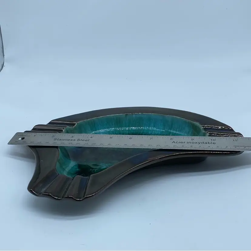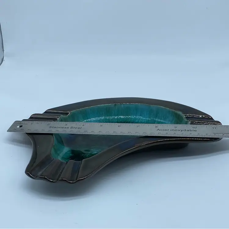 Vintage Blue Mountain pottery ashtray BMP Collingwood Canada collectible green flow glaze pottery ashtray No chips or cracks 11 inches by 8.5 inches