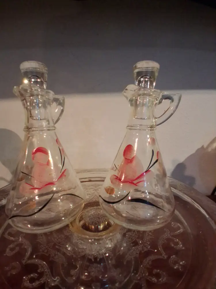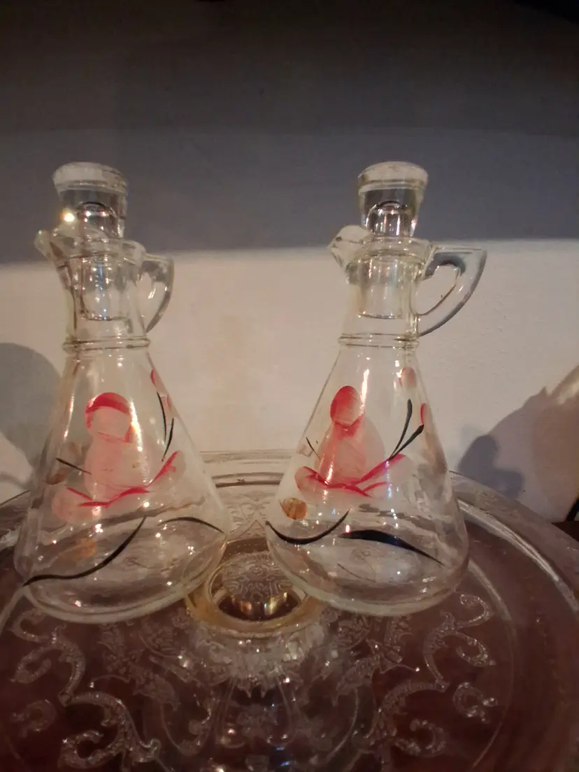 These were originally used on the table for oil and vinegar - however today they can be used for a variety of things - watering plants, mouthwash display, propogating plants, etc.