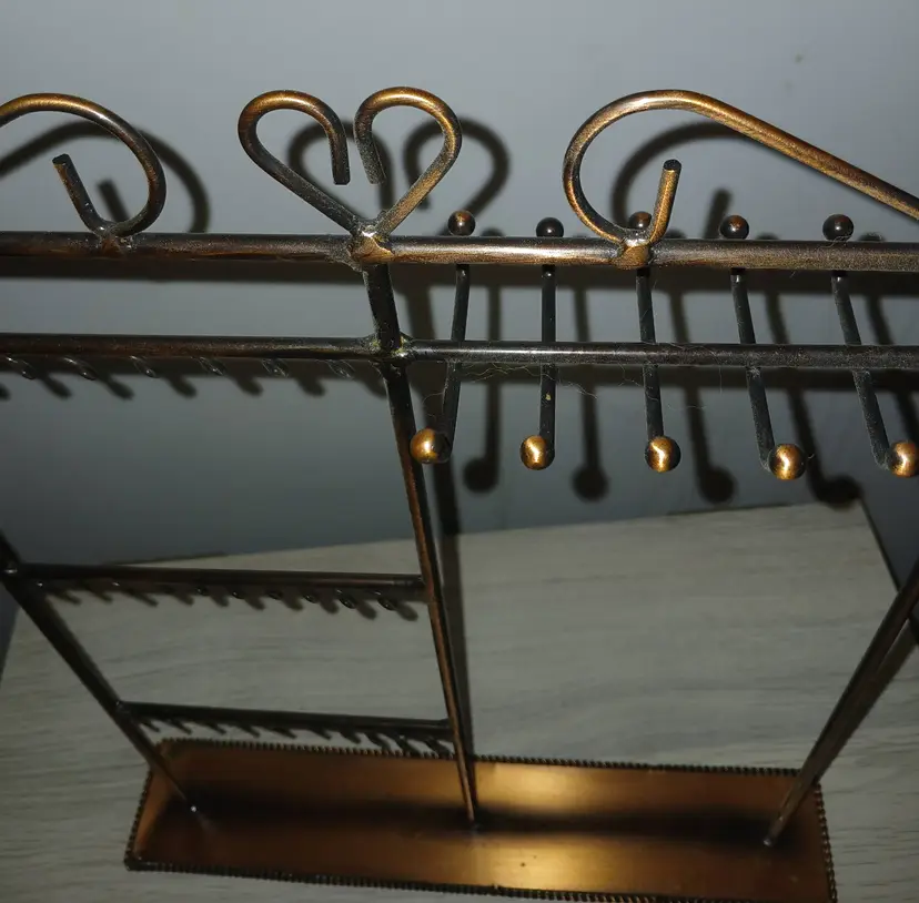 No more trying to untangle chains and necklaces if you hang and display them on this. It would look gorgeous on any bathroom or bedroom vanity and the bronze color just shimmers and shines.