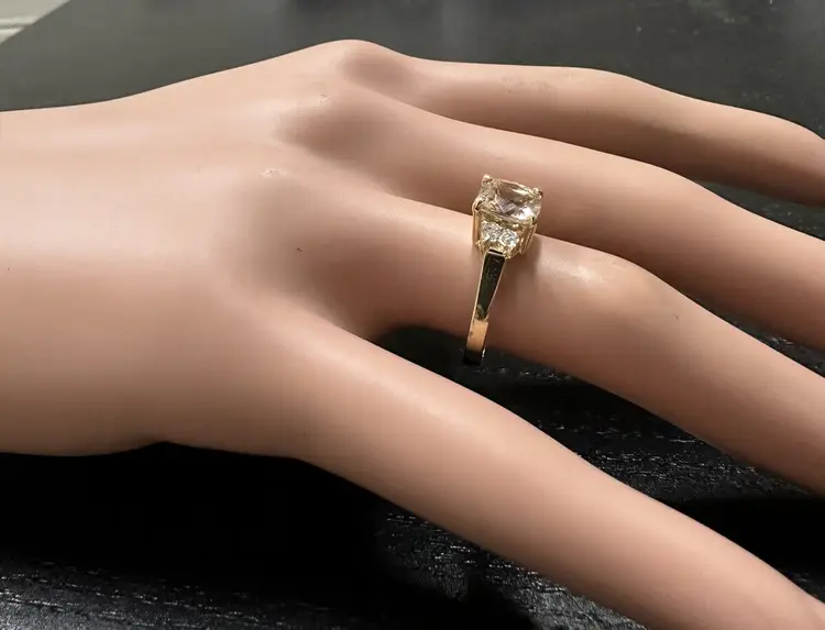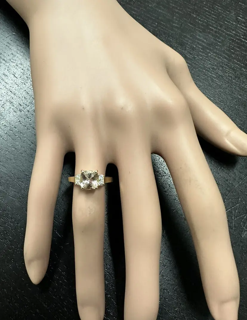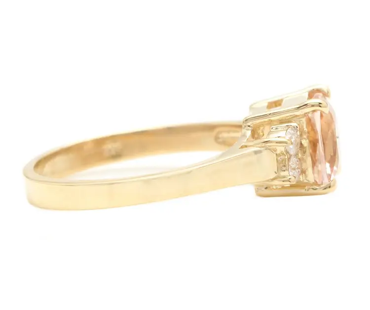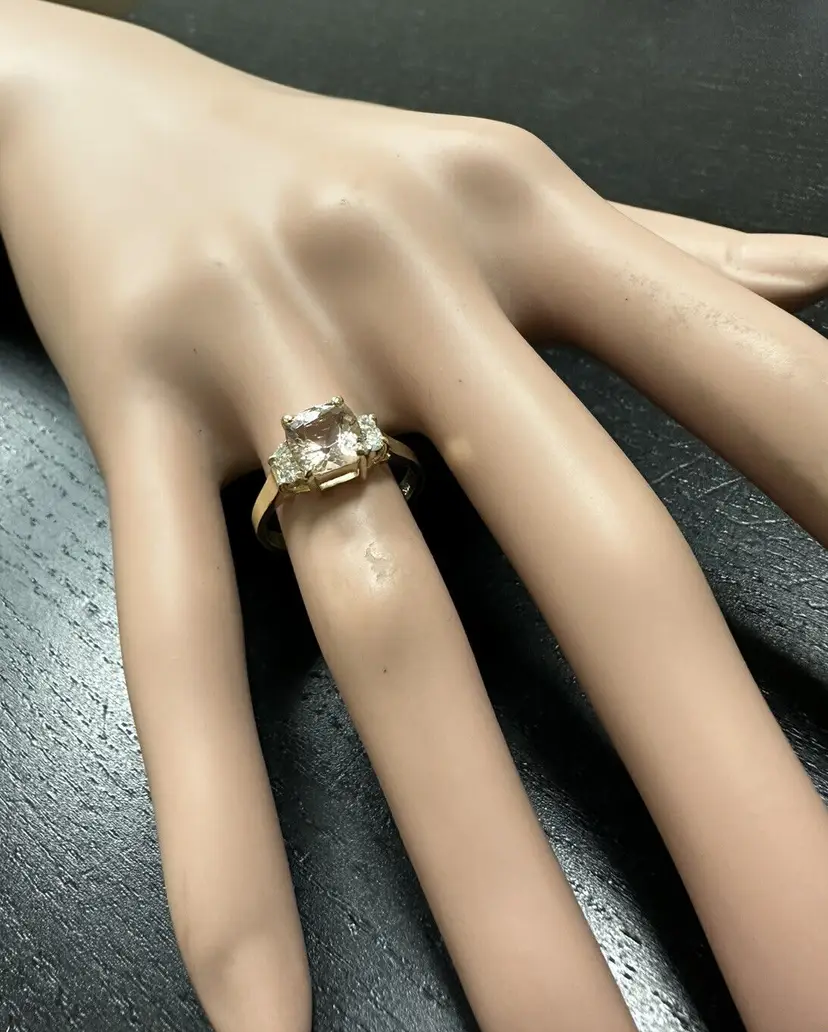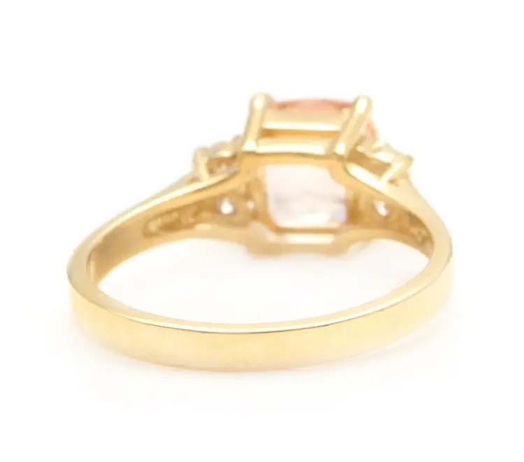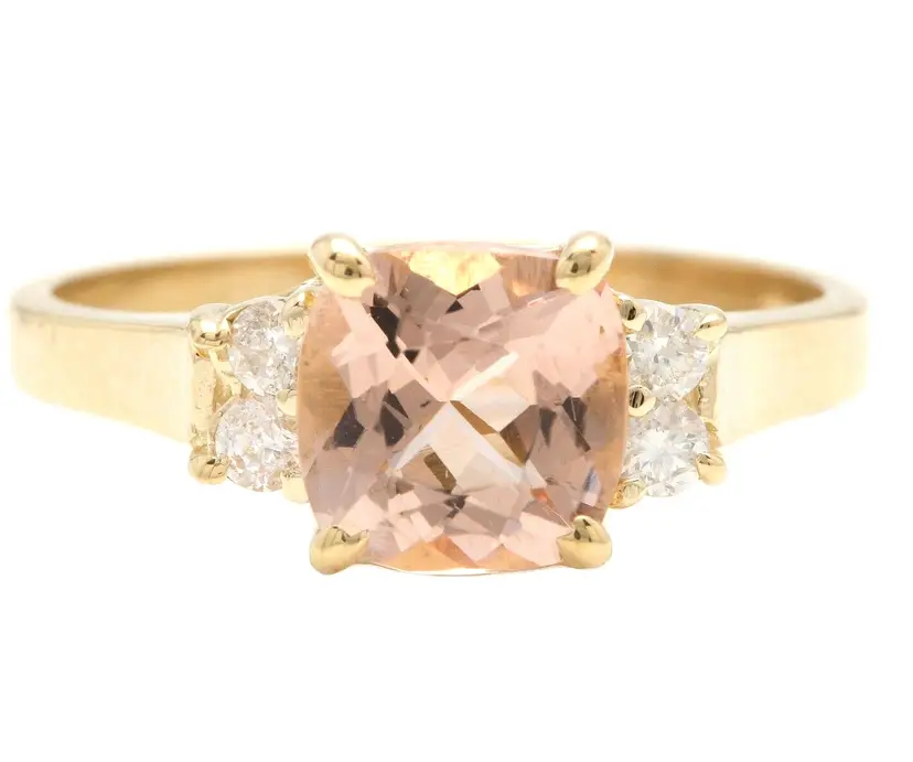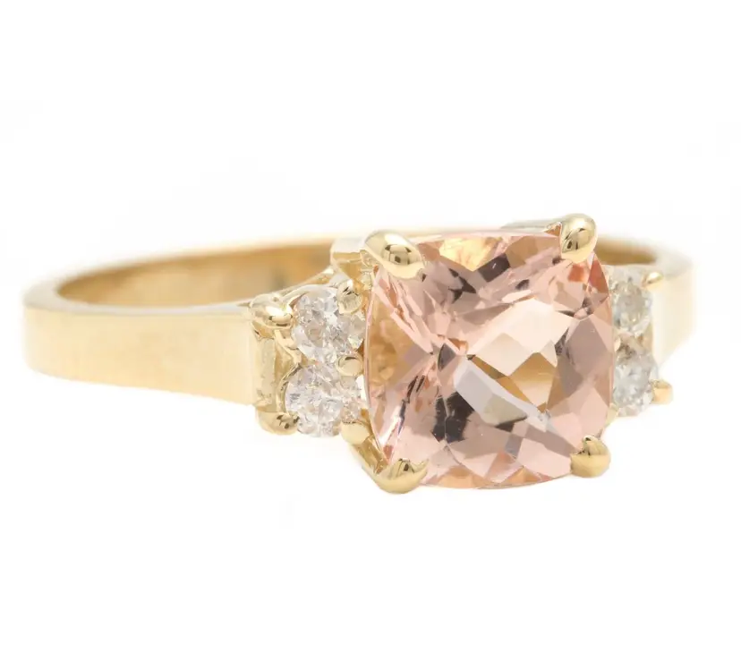 Main Stone Creation: Natural Sizable: Yes Main Stone Color: Peach Metal: Yellow Gold Secondary Stone: Morganite Main Stone: Morganite Ring Size: 6 Brand: Unbranded Main Stone Treatment: Heating Type: Ring Metal Purity: 14k Main Stone Shape: Cushion Square Theme: Nature Style: With Diamonds & Gemstones Total Carat Weight (TCW): 1.42