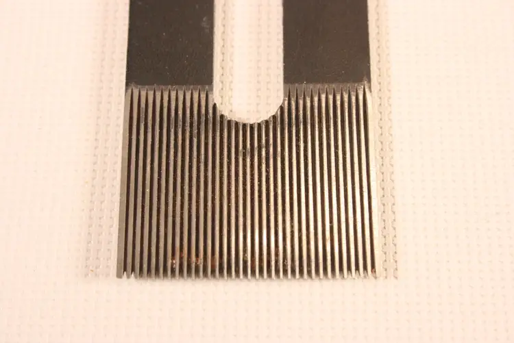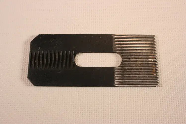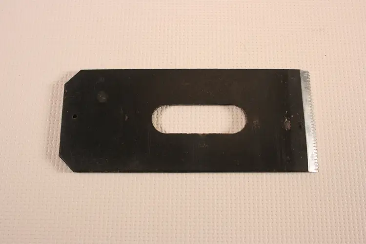 1 5/8" wide, 3 7/8" long, Notched back. No manufacturer markings.
