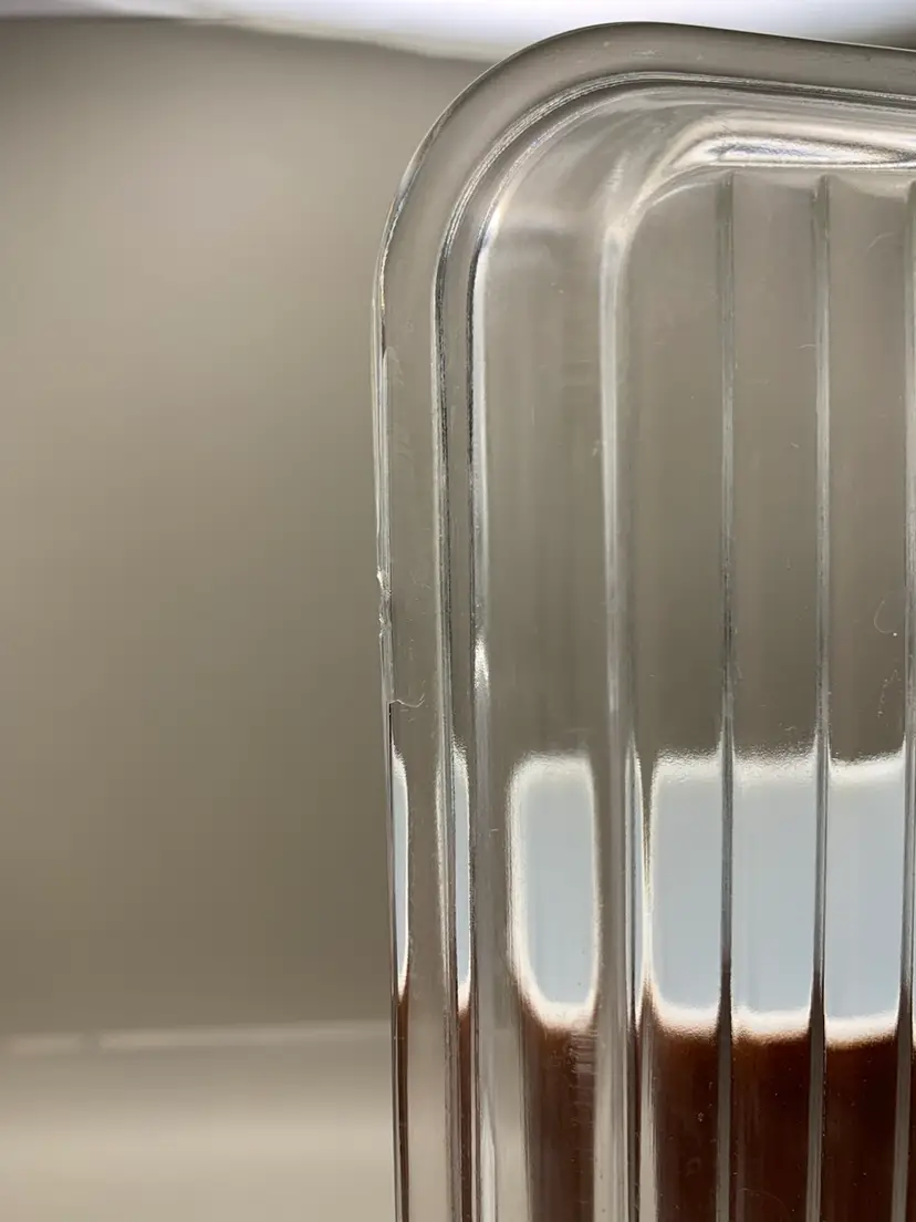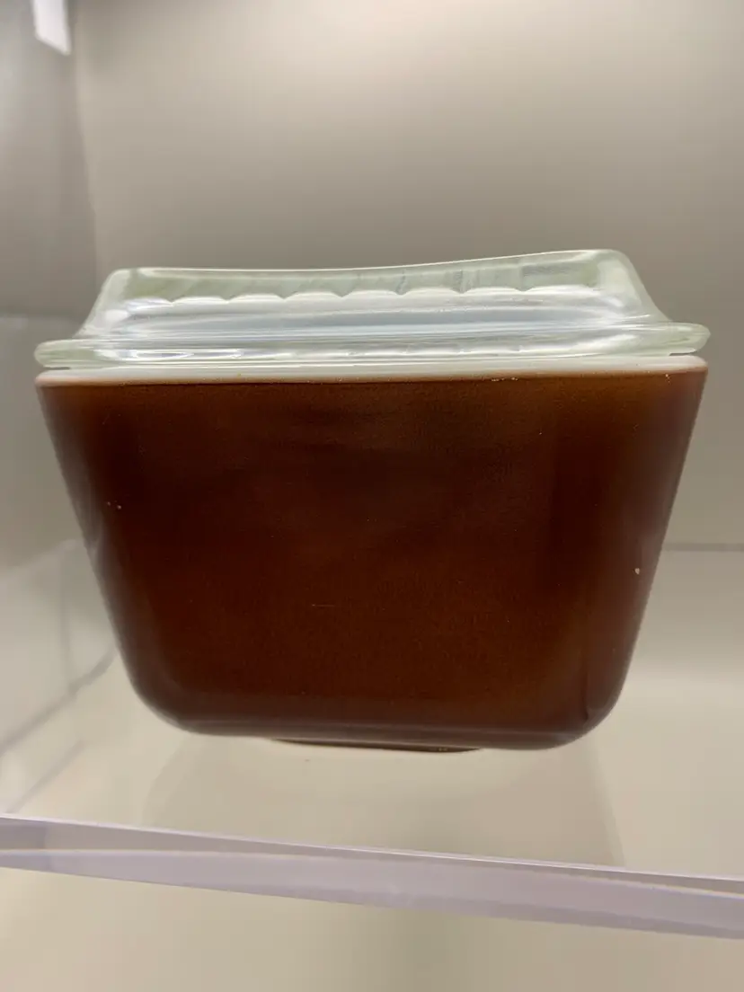 Dish has scrape along one side. Lid has a chip. 6.75 x 4 x 2.5 inches.