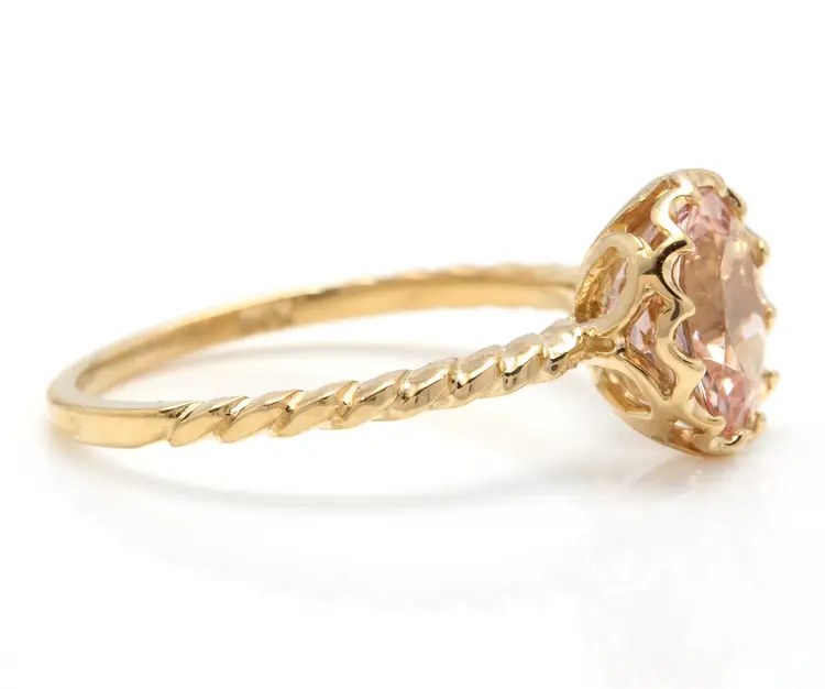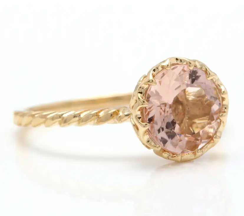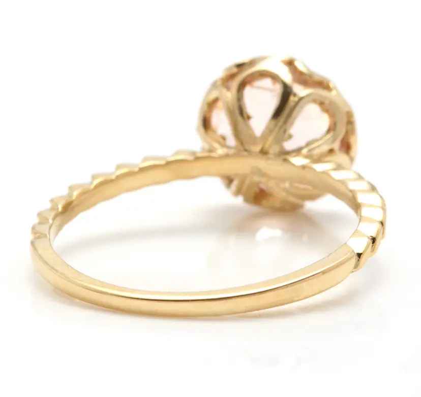 Main Stone Creation: Natural Sizable: Yes Main Stone Color: Peach Material: Gemstone Metal: Yellow Gold Main Stone: Morganite Ring Size: 7 Brand: Unbranded Main Stone Treatment: Heating Type: Ring Metal Purity: 14k Main Stone Shape: Round Total Carat Weight (TCW): 1.50
