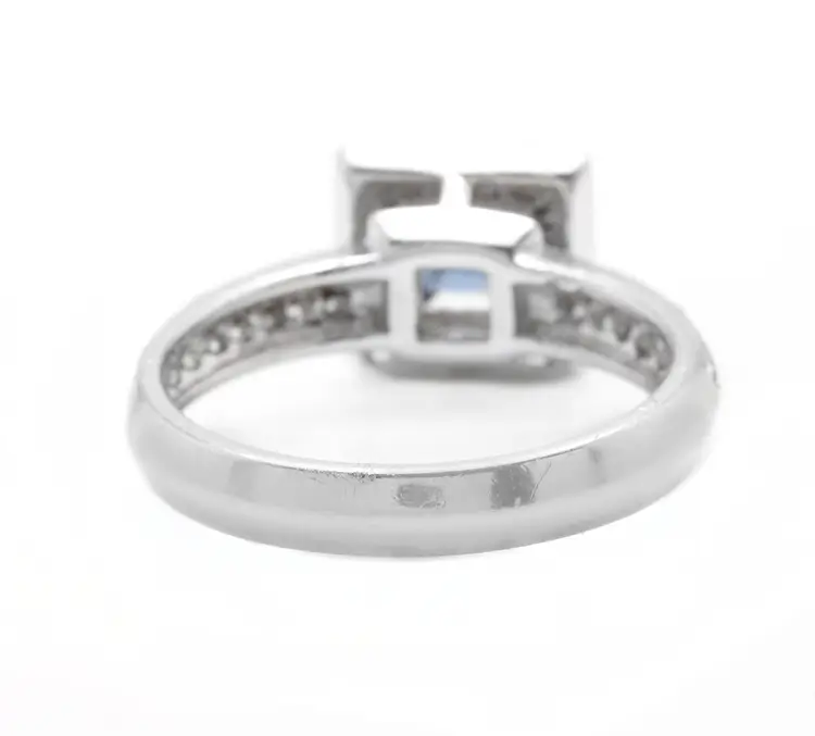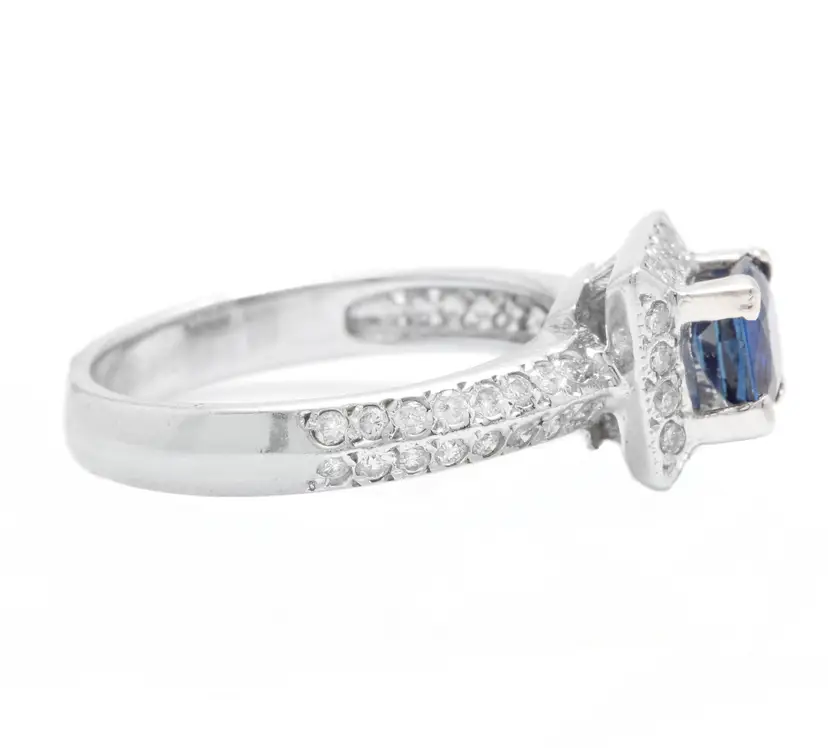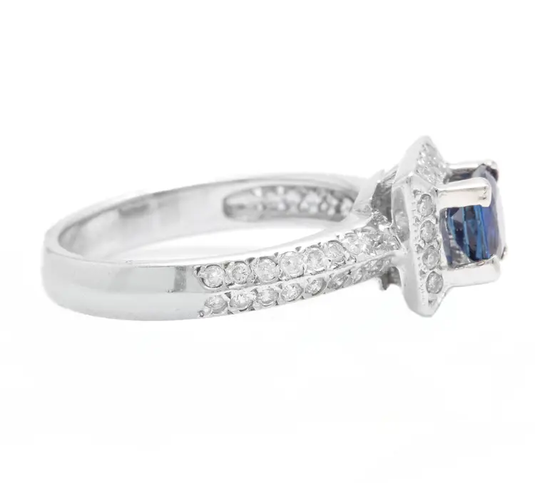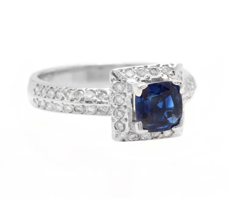 Country/Region of Manufacture: United States Main Stone Color: Blue Main Stone Treatment: Heating Metal Purity: 14k solid gold Main Stone: Sapphire Sizable: Yes Main Stone Creation: Natural Metal: White Gold Ring Size: 7 Total Carat Weight (TCW): 1.50 Main Stone Shape: cushion Brand: Unbranded Type: Ring