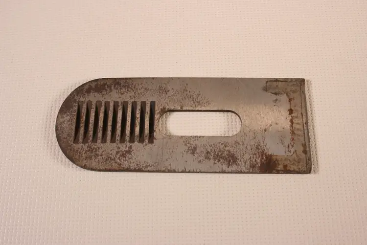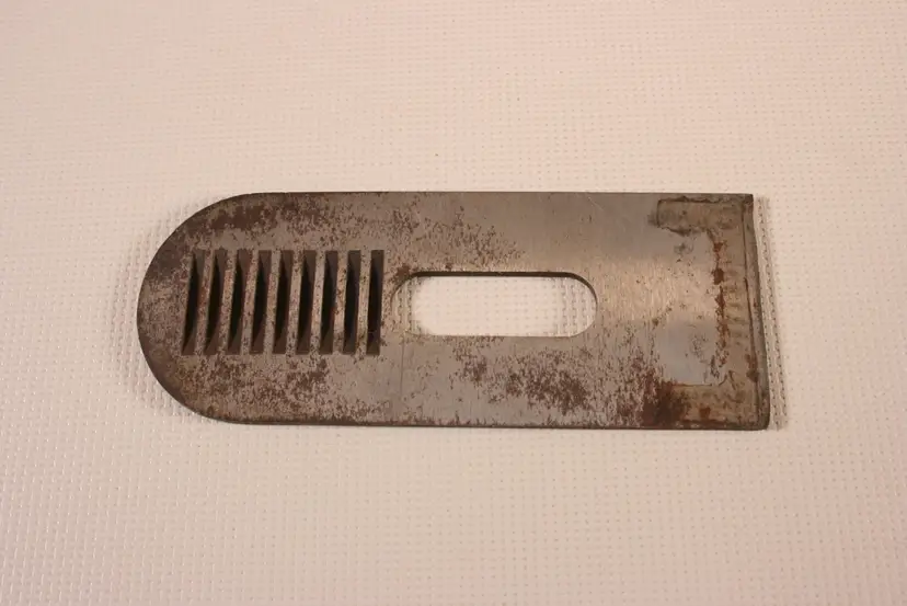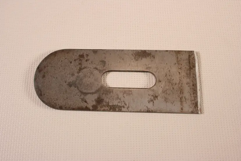 4 1/4" long, Notched back. Came from a Stanley but is unbranded. Same size and thickness as a Stanley iron.
