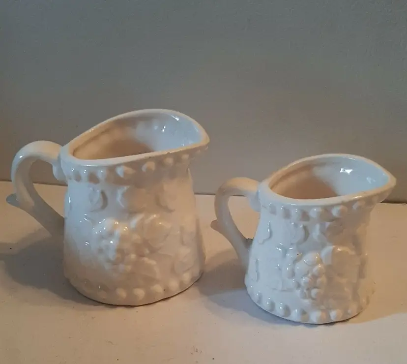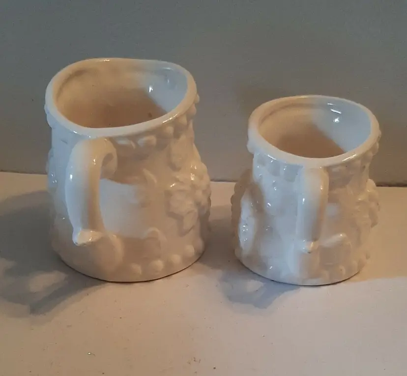 – Features: Decorated – Custom Bundle: Yes – Department: Girls, Teens, Unisex Adults, Unisex Adult – Handmade: No – Pattern: Grapes – Bundle Description: 2 – Number of Items in Set: Two-Piece – Occasion: All Occasions – Vintage: Yes – Country/Region of Manufacture: Unknown – Material: Ceramic & Porcelain – Shape: Round – Design: Embossed – Glass Type: Normal Glass – Brand: Unbranded – Style: Victorian – Color: White – Beverage Type: Cold – Set Includes: Measuring Cups – Original/Licensed Reproduction: Original – Theme: Food & Drink, Food – Capacity: 1/8 cup – Type: Measuring Cup Set