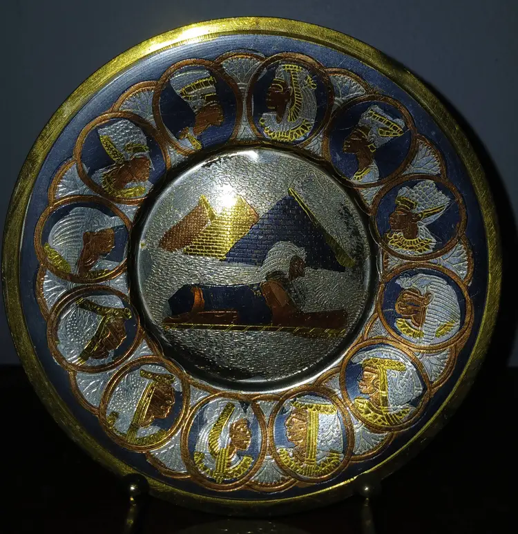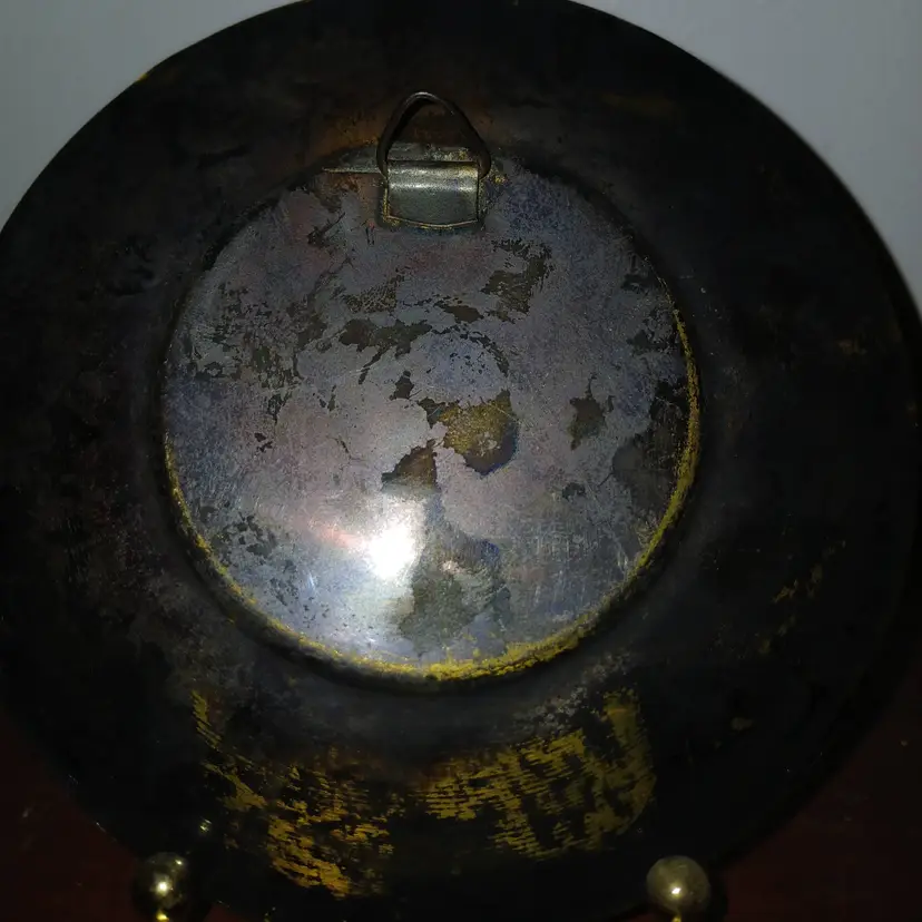 With the copper and silver and gold accents this piece is a stunning little saucer size plate.