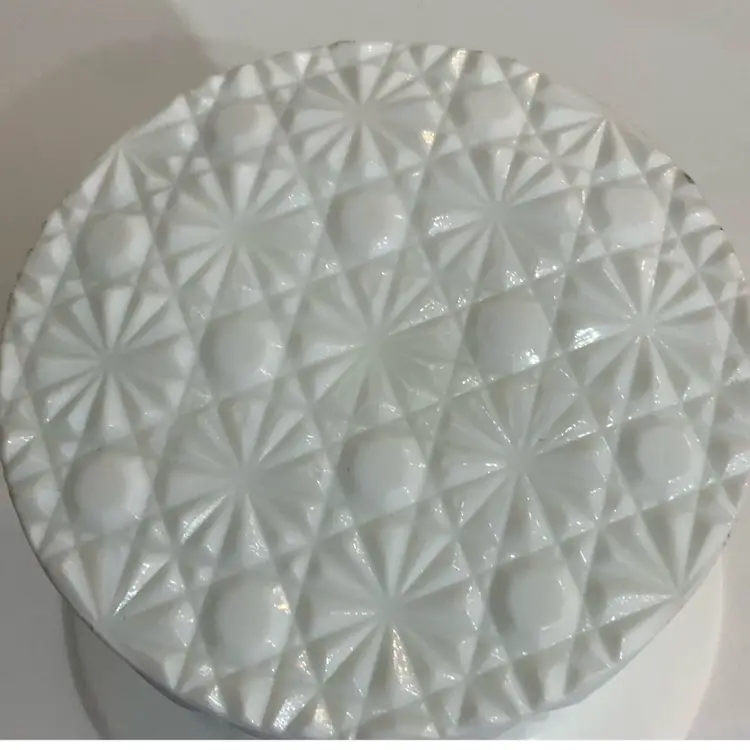 Pressed glass mold is visible. Looks beautiful. It shows a little wear from its age but still gorgeous. pleased review photos. Approximately 3.25” by 4.5”