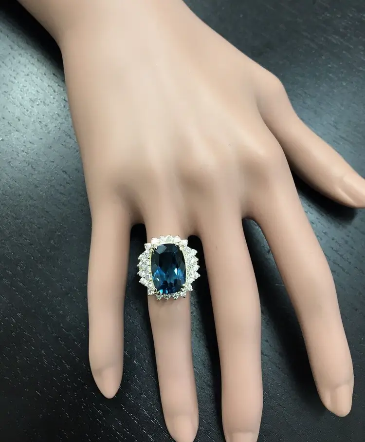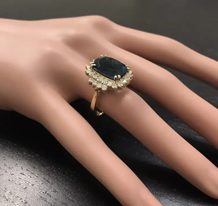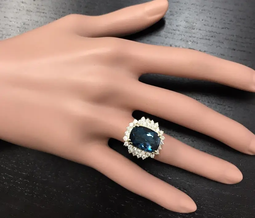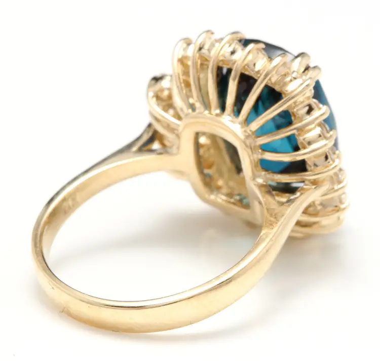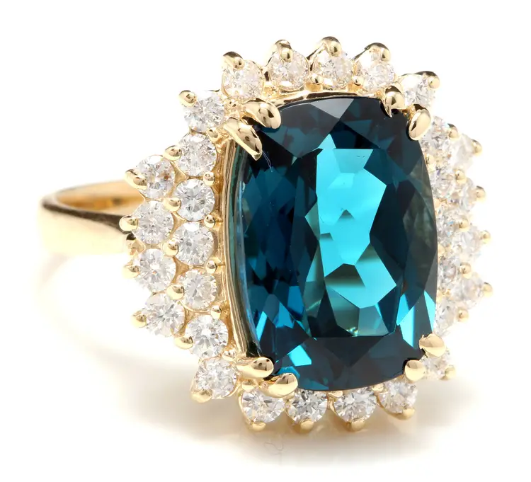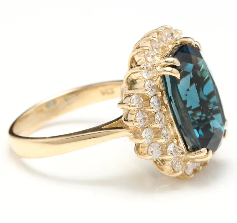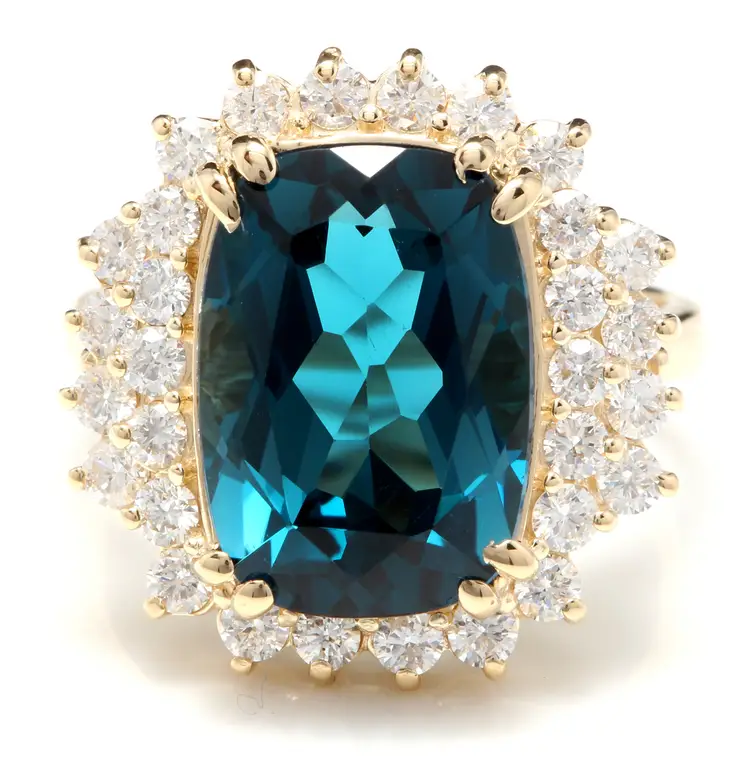 Metal: Yellow Gold Metal Purity: 14k Sizable: Yes Main Stone: London Blue Topaz Main Stone Color: Blue Total Carat Weight (TCW): 10.15 Main Stone Shape: Cushion Ring Size: 7 Main Stone Treatment: Heating, Irradiation Main Stone Creation: Treated Total Carat Weight: 10.15 Brand: Unbranded Type: Ring
