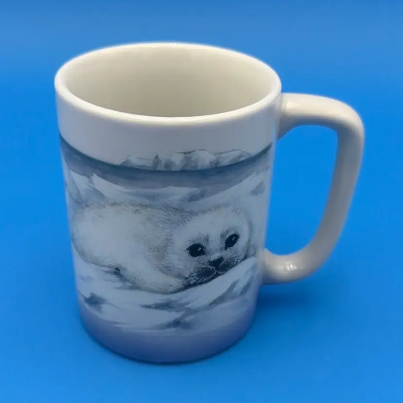 Vintage Otagiri Japan Coffee Cup White Baby Seals Porcelain 8oz. Mug Adorable