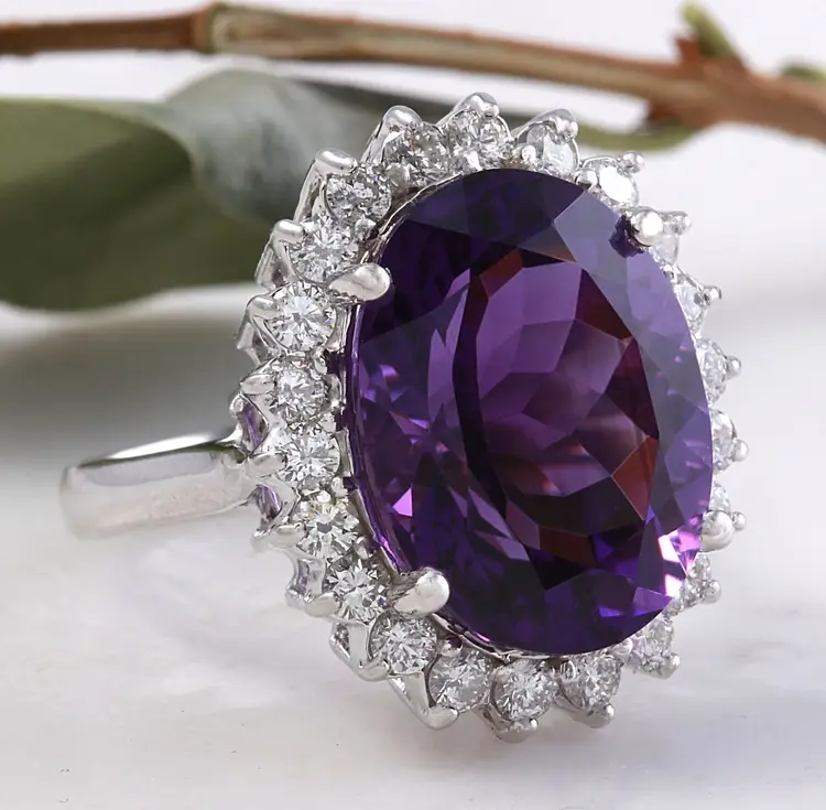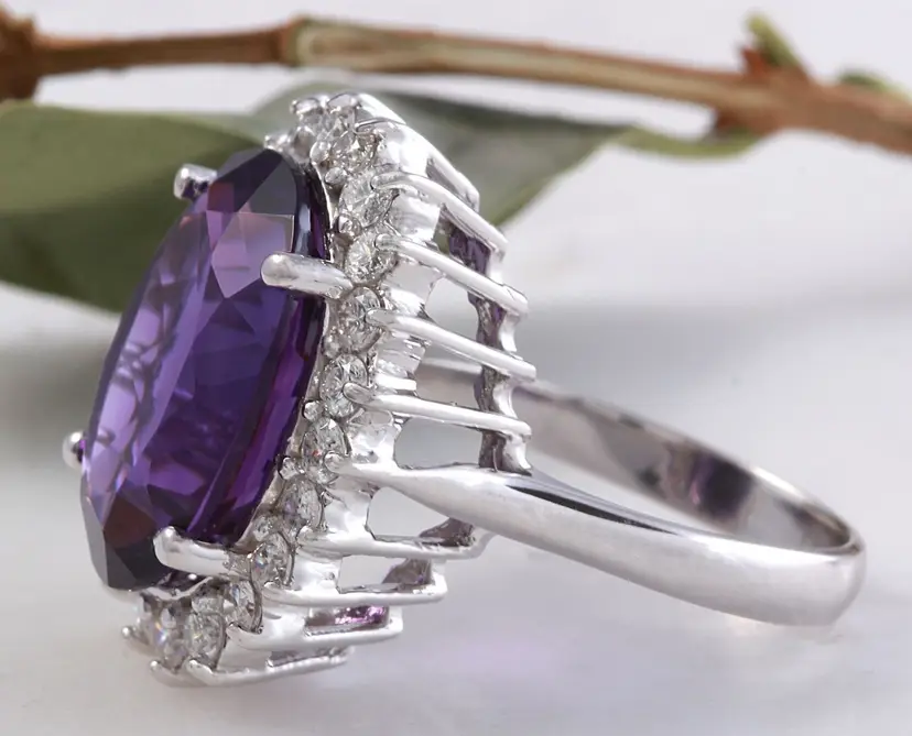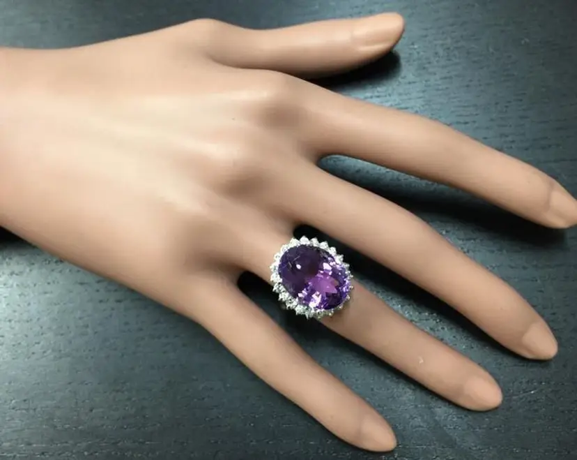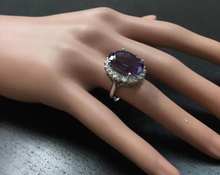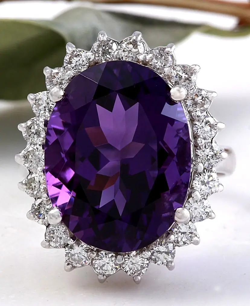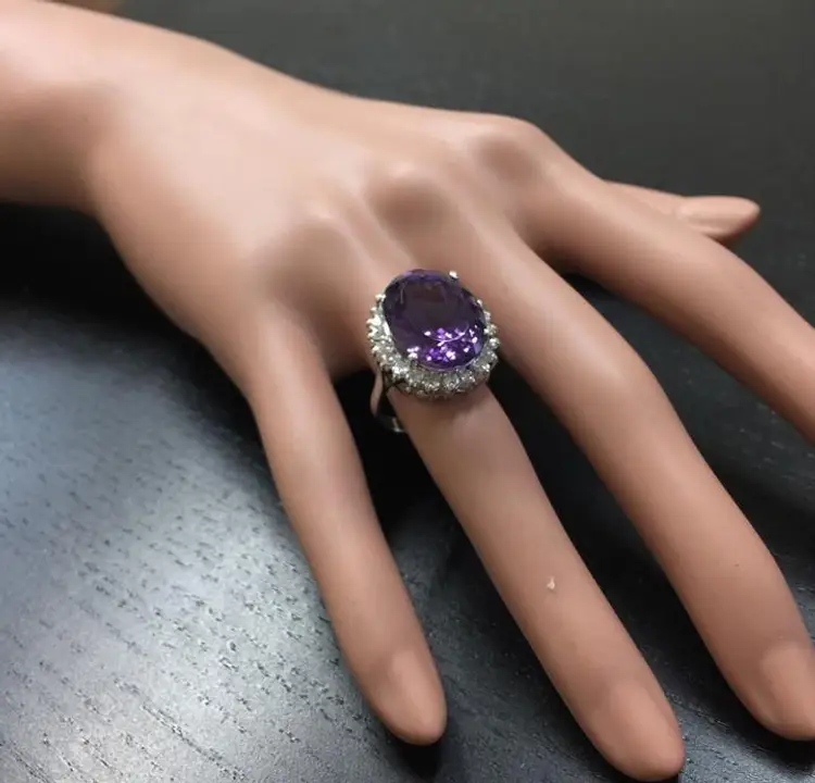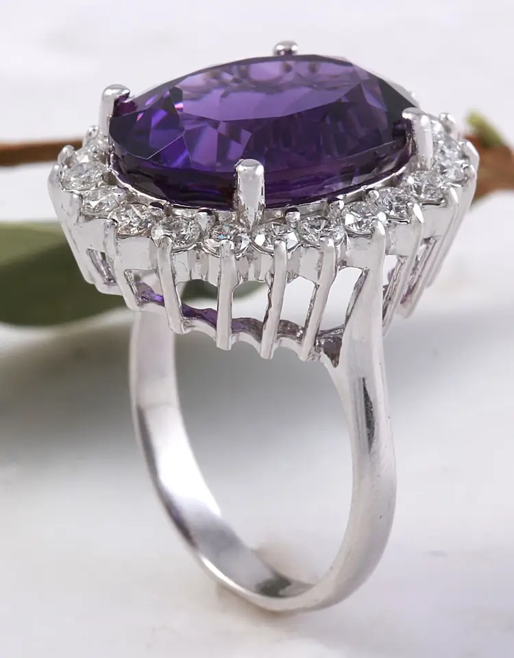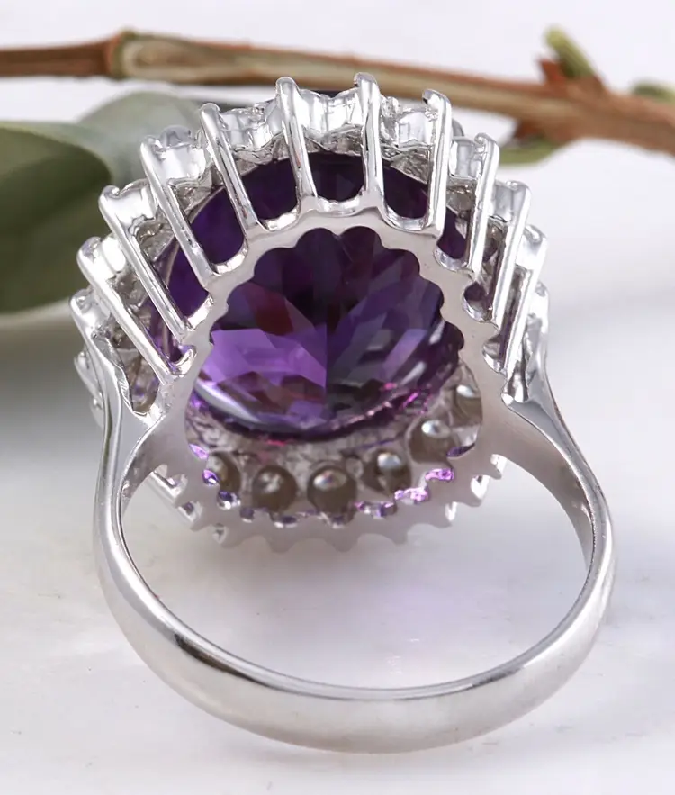 Main Stone Color: Violet Metal Purity: 14k solid gold Main Stone: Amethyst Sizable: Yes Metal: White Gold Ring Size: 7 Total Carat Weight (TCW): 10.85 Main Stone Shape: Oval Type: Ring Brand: Unbranded