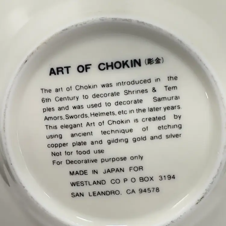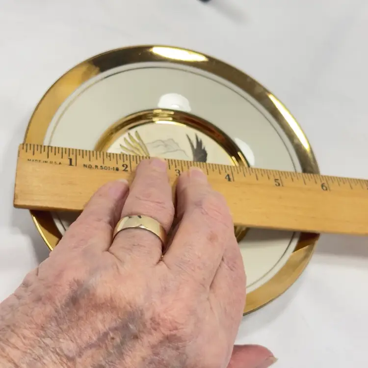 no chips or cracks, 6" 7oz, there may be a scratch or mark on the gold due to age and use
