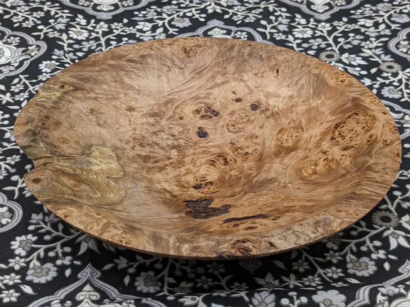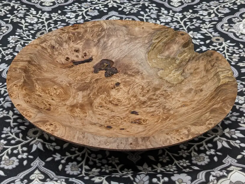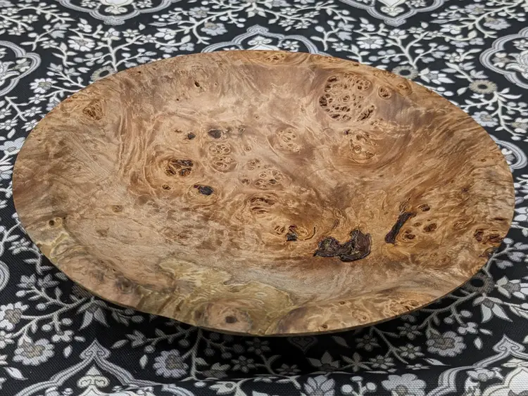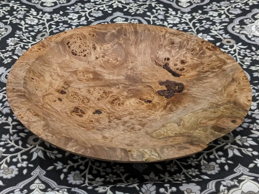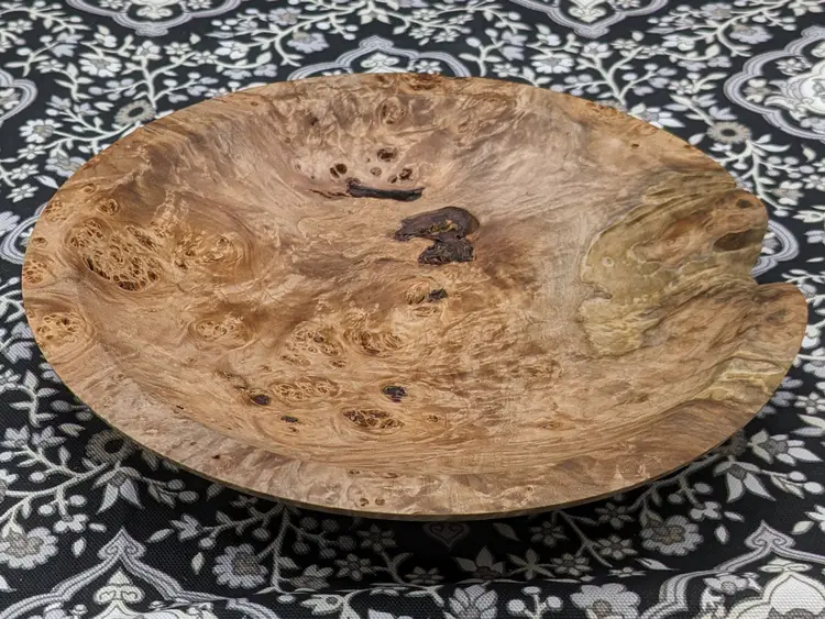 This 10-inch maple burl plate is not just a dish; it's a statement piece that brings the warmth and uniqueness of nature right to your dining table. Each plate, with its distinctive burl patterns and rich wood tones, tells a story of the forest from which it came. Imagine serving your family and friends on these one-of-a-kind plates, elevating every meal into a special occasion. Not only are they beautiful, but they are also a testament to skilled craftsmanship and sustainable practices, making them an excellent choice for those who value both aesthetics and ethics in their kitchenware.