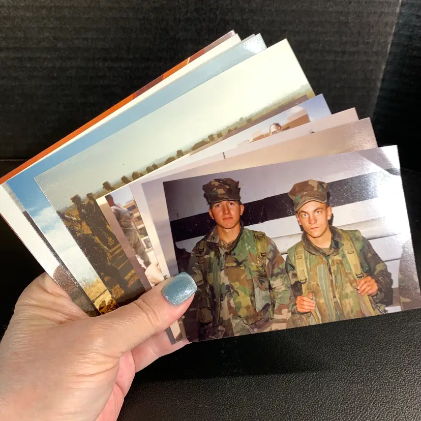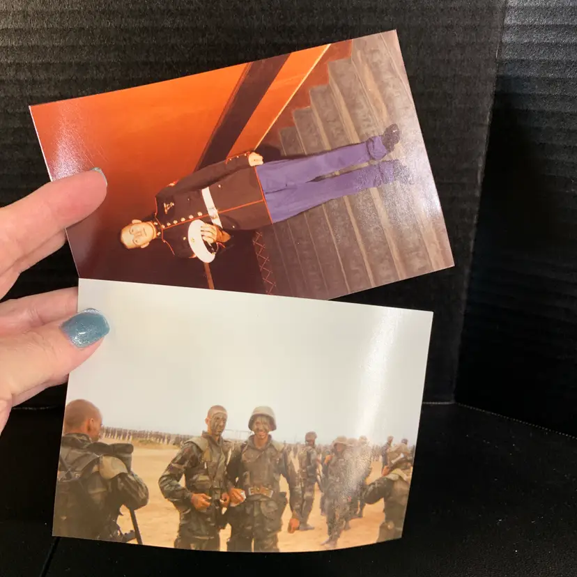 These are in great condition. I believe they are from basic training at Pendelton. Weighs 1 ounce. If the actual postage ends up being less than what you paid, you will be refunded for anything over one dollar.