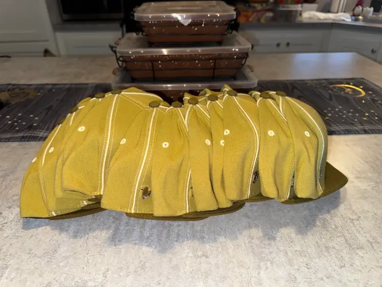 These had the quarter brims with the flip up embroidered logo underneath, logos all over the hats. These are really nice. I wear one myself.