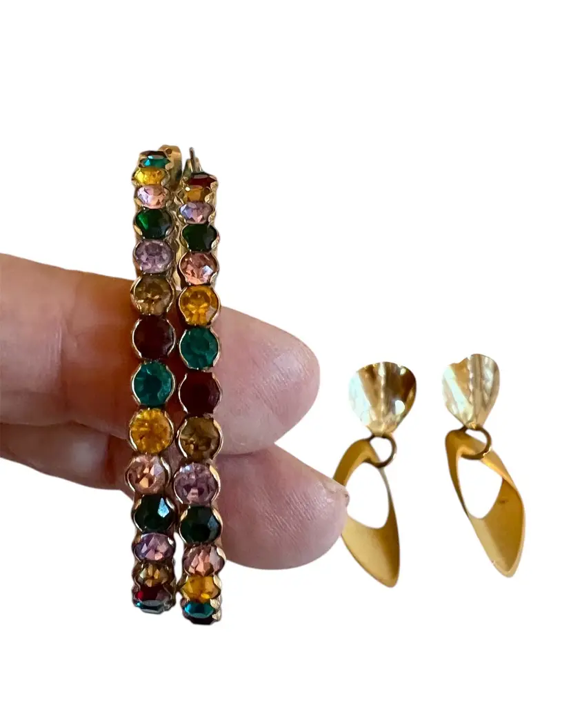 Earrings are 1-1/2” to 3” Hoops are multicolor faceted glass #ofc-2