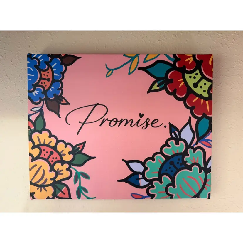 A meaningful piece of art created from heart and connection. This limited-edition 11” x 14” canvas print features original artwork by artist Justin Pauls, thoughtfully paired with the signature Promise. logo—representing the commitments we make to ourselves and the beauty of beginning again.