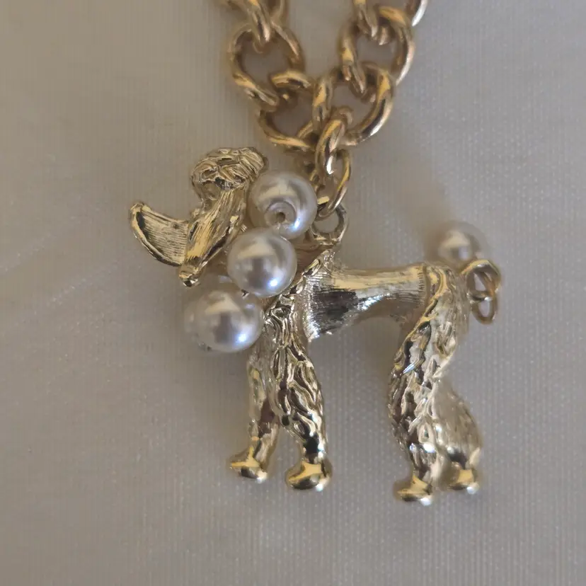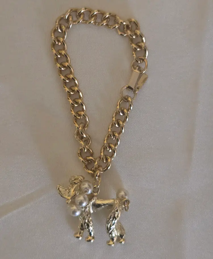 The Poodle Charm bracelet witha faux pearl is signed Lisa.