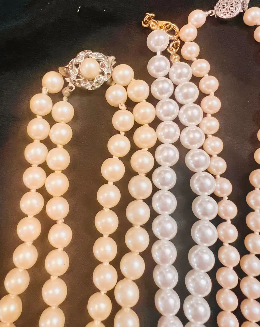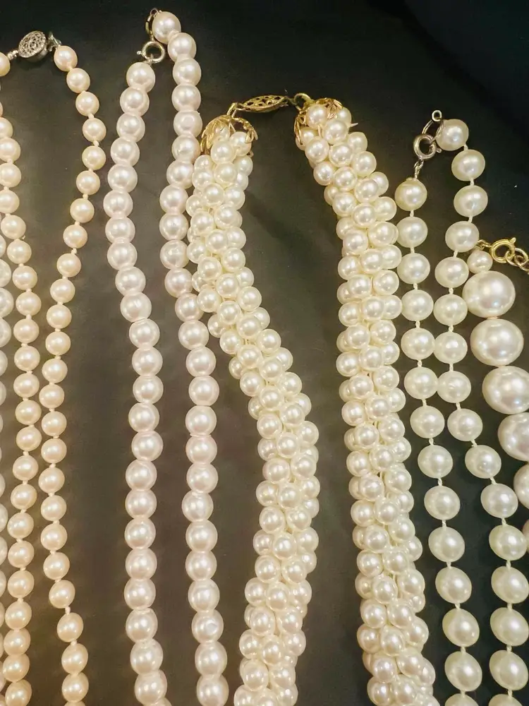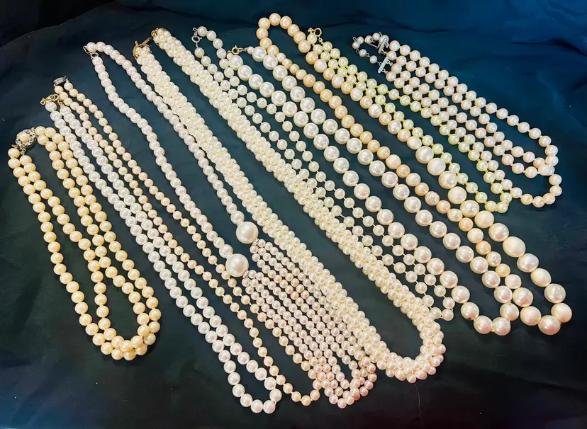 10 Vintage Faux Pearl Necklaces! Great variety of single and double strand and lengths. Perfect to resell or keep them all! Thanks for looking! 1