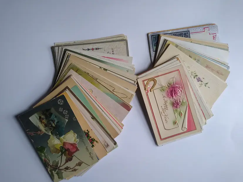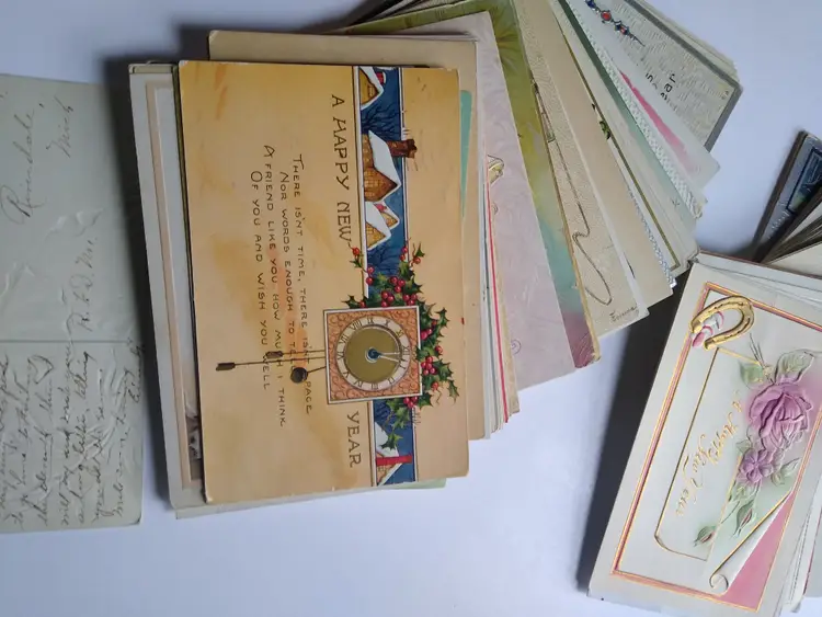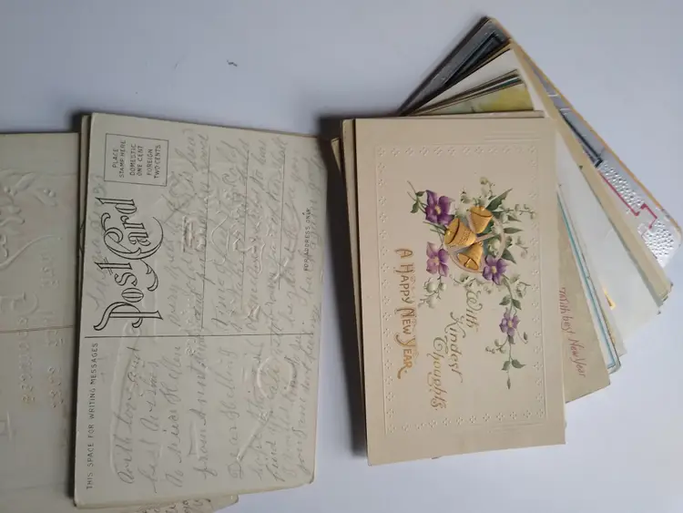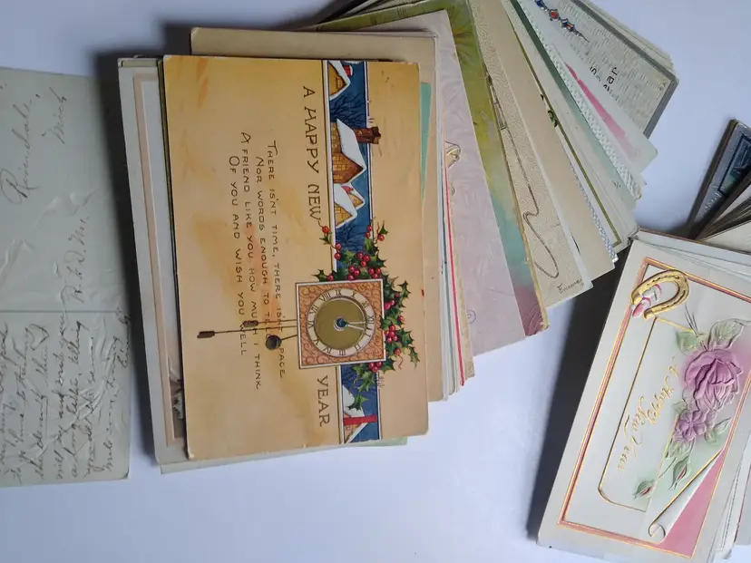 Big lot of (100+) original vintage antique post cards. Many are embossed and some are unused and some have been posted with cancels and stamps. Most are in excellent condition with a few with creases, dings, and ink marks. All for one money. See my other postcard lots to combine and save.