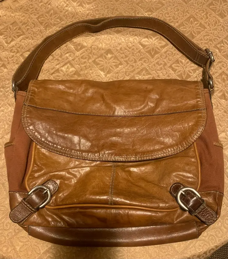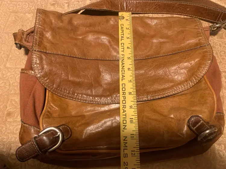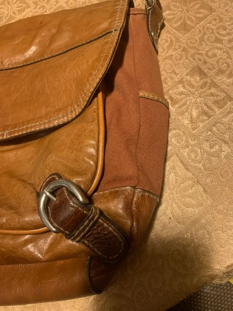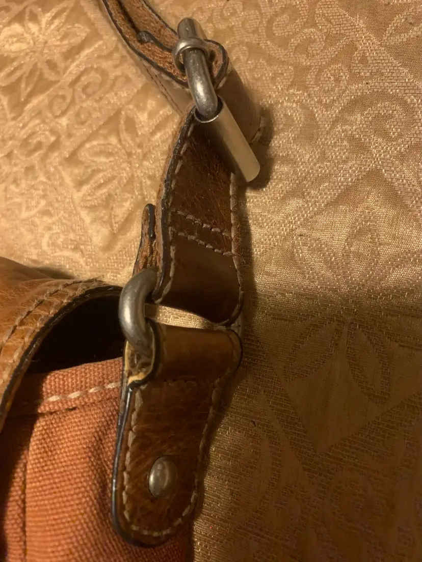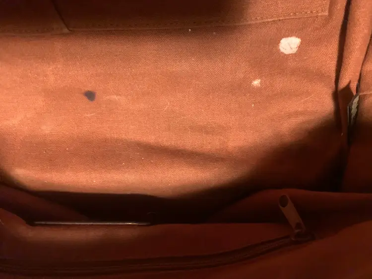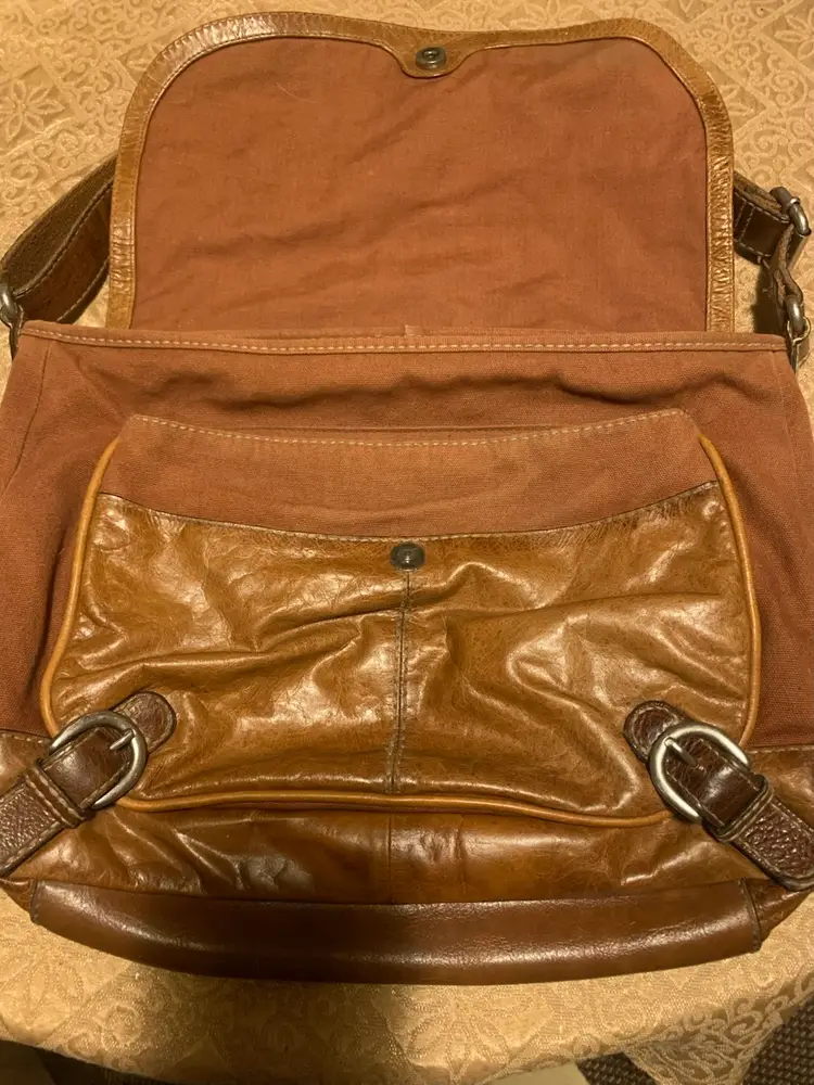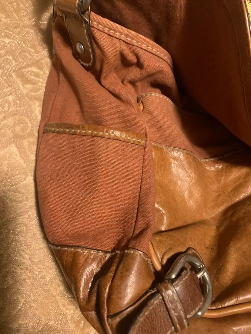 Outside in very good condition inside a small spot shown in pictures, This purse could last a lifetime extremely well made.