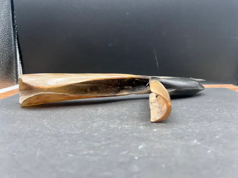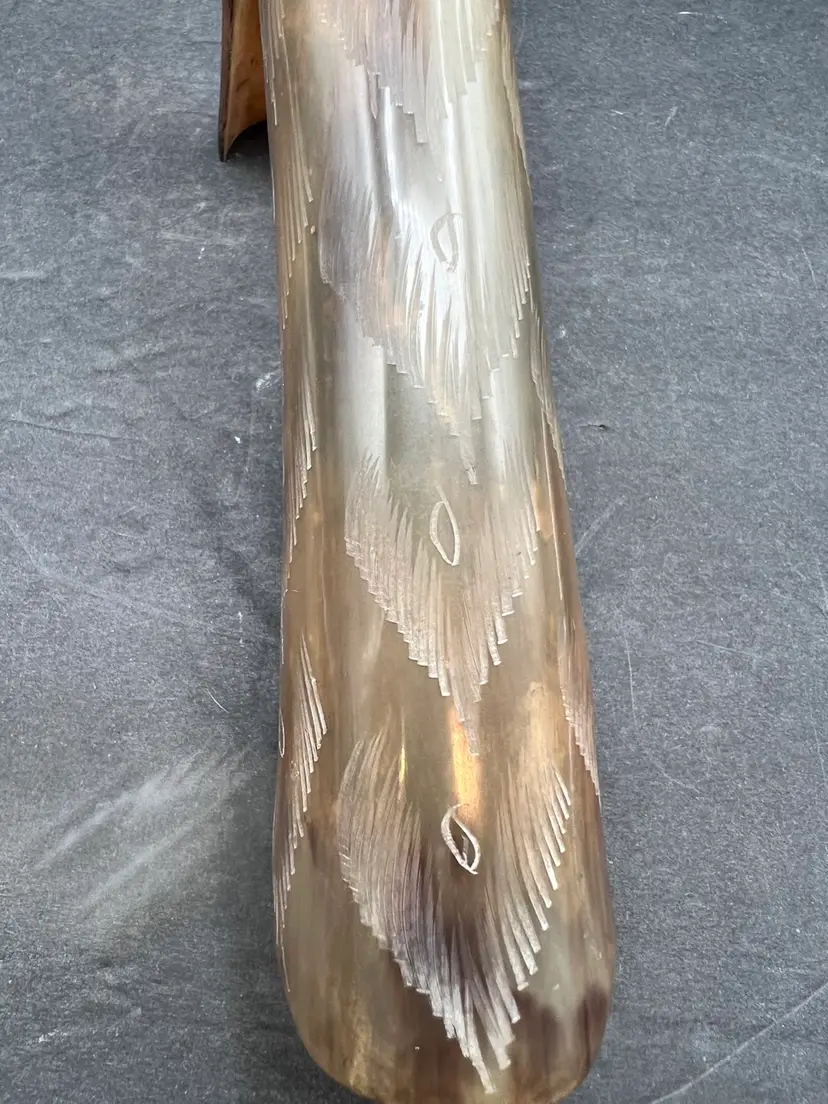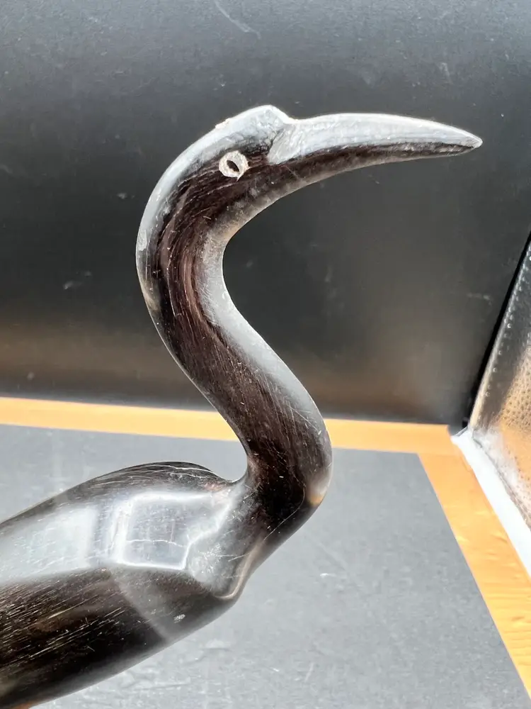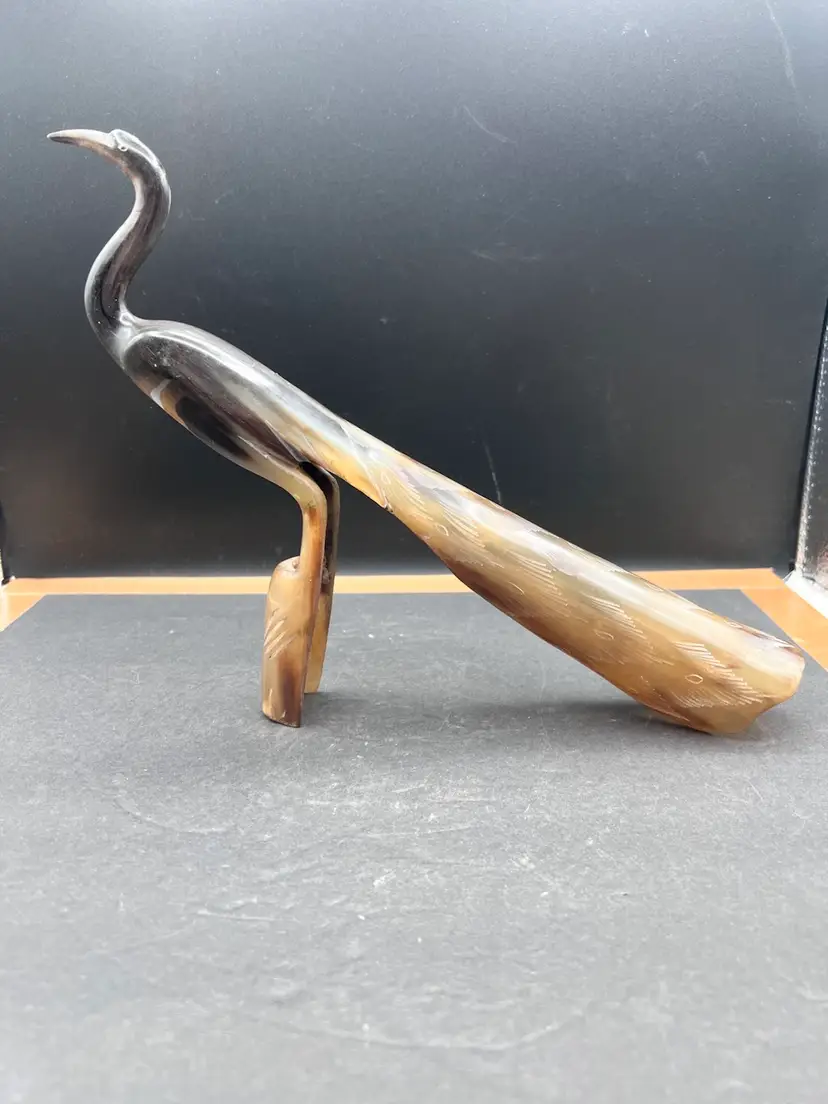 Vintage Hand Carved Out Of Natural Horn Bird/Peacock Statue, Cream And Dark Brown 9” Tall X 11” Long In very good vintage condition.