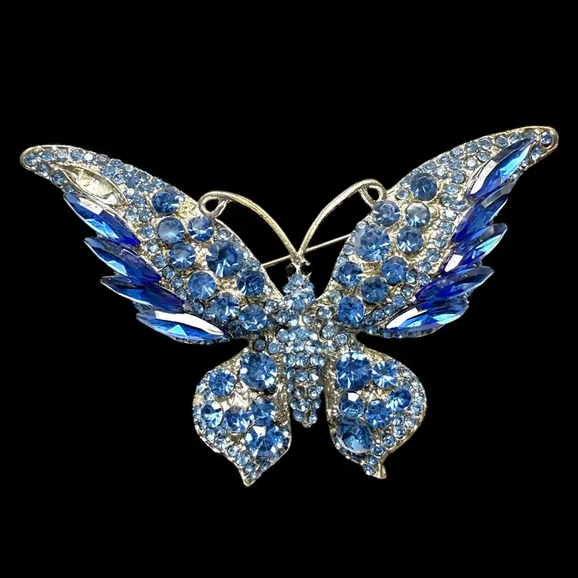 Large Blue Butterfly Rhinestone Brooch Pin Jewelry