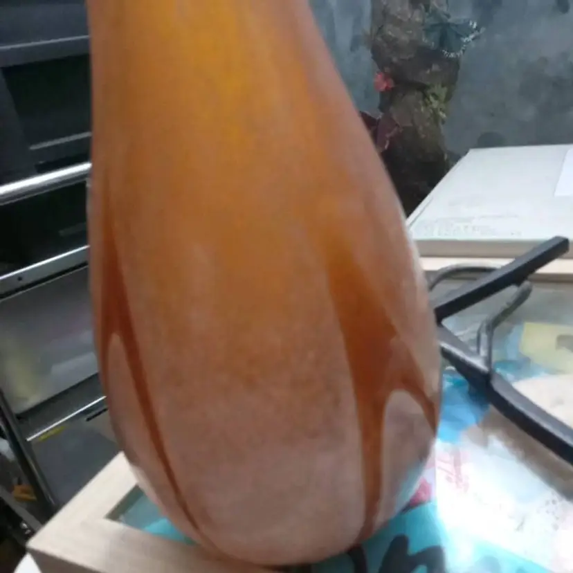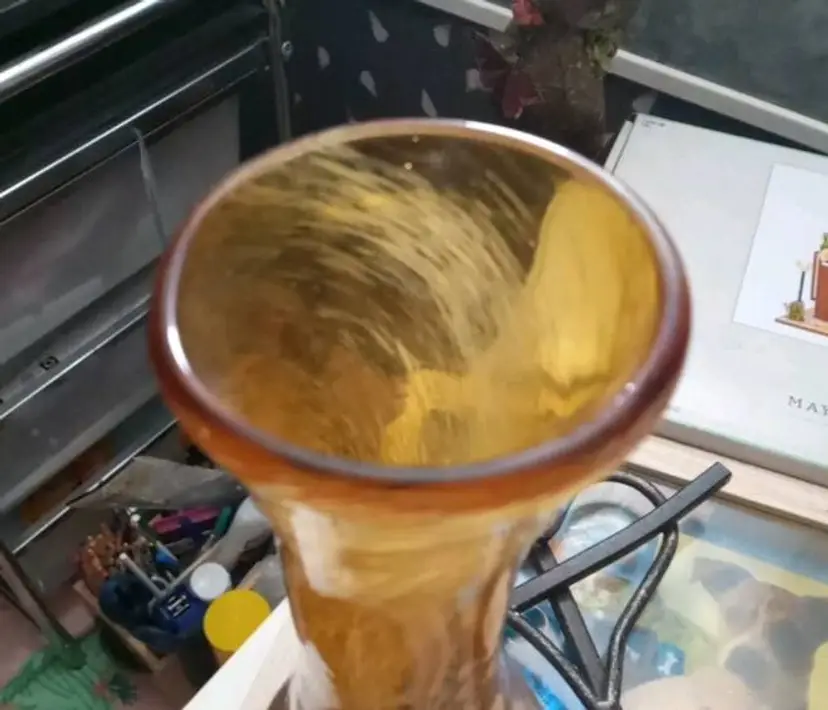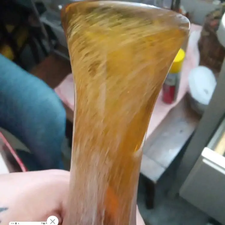 Vintage amber and white speckled hand blown art glass bud vase